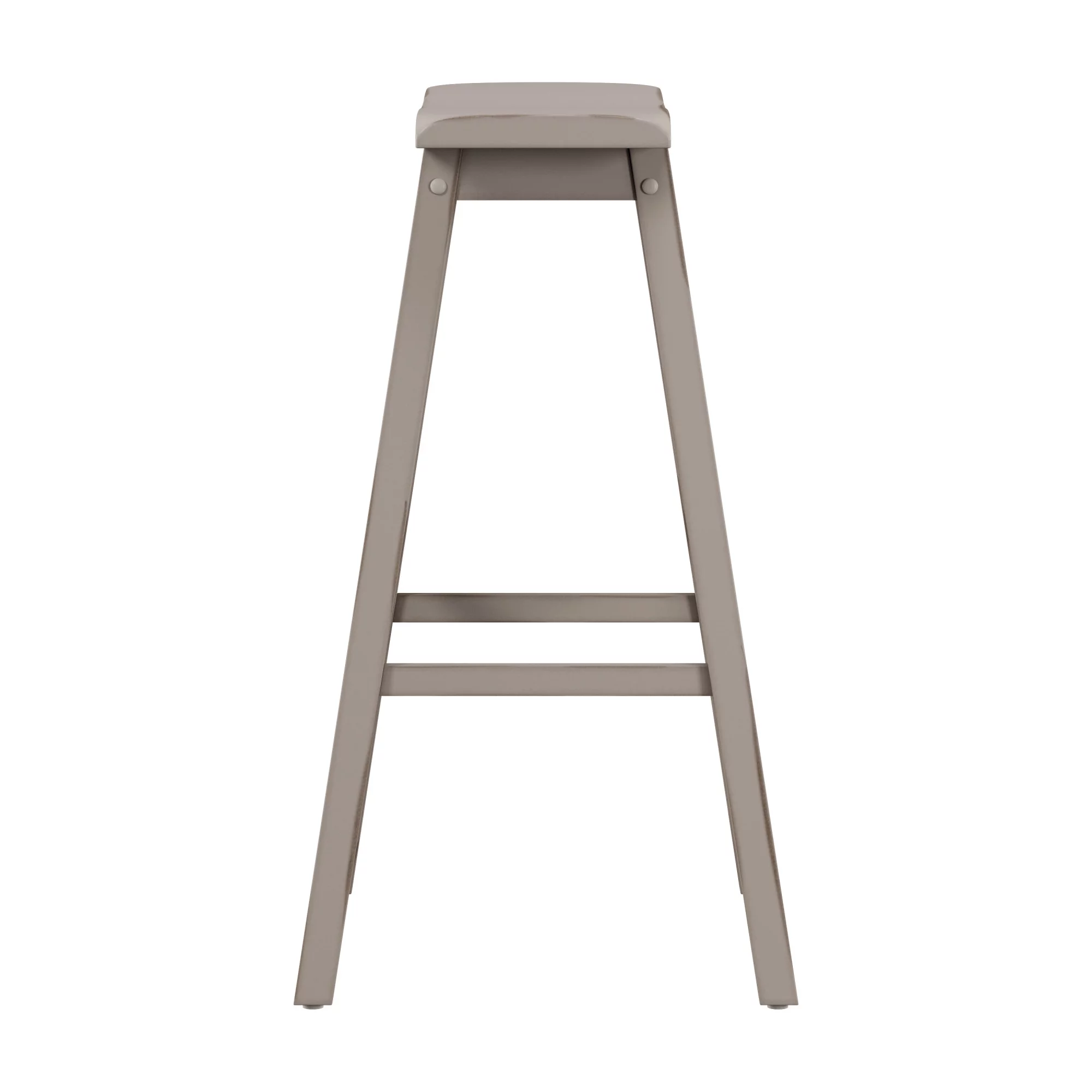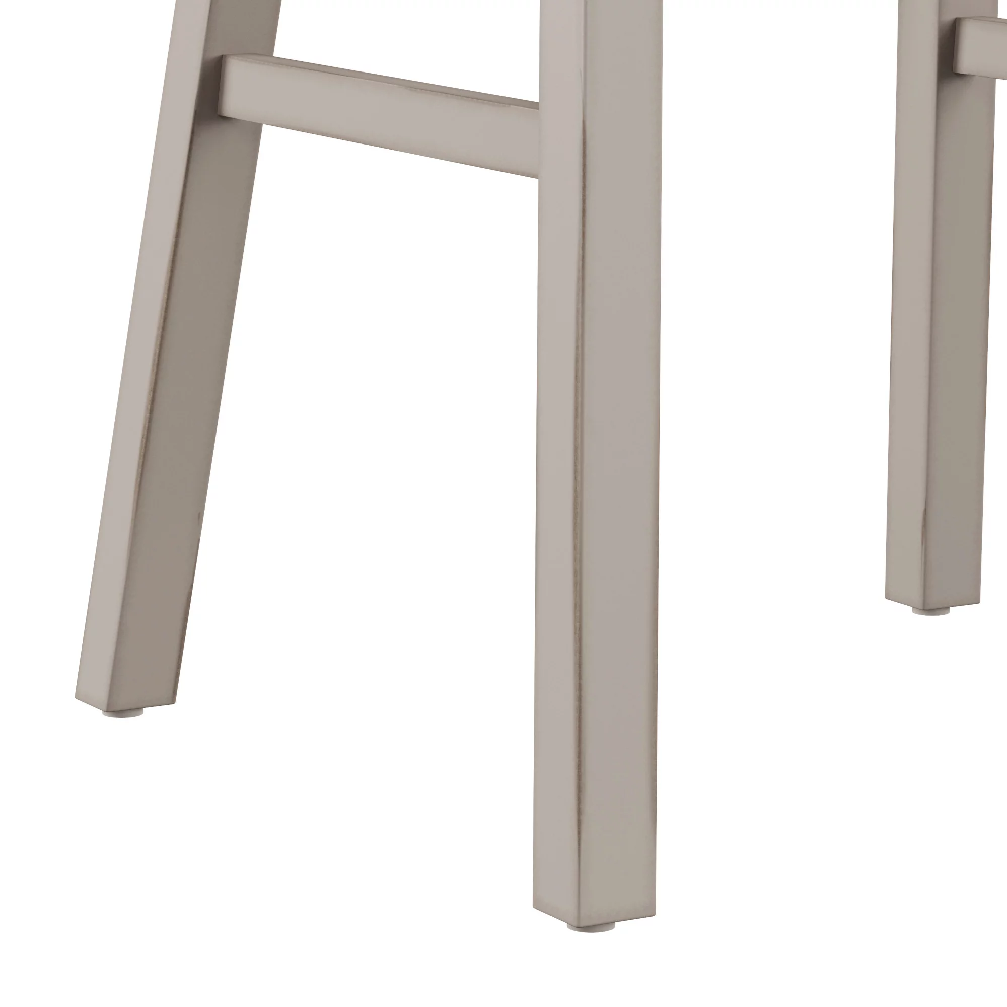 OSP Home Furnishings Saddle Stool 24" in Beige Fabric and Antique White Base and Antique Bronze Nailheads 2-Pack