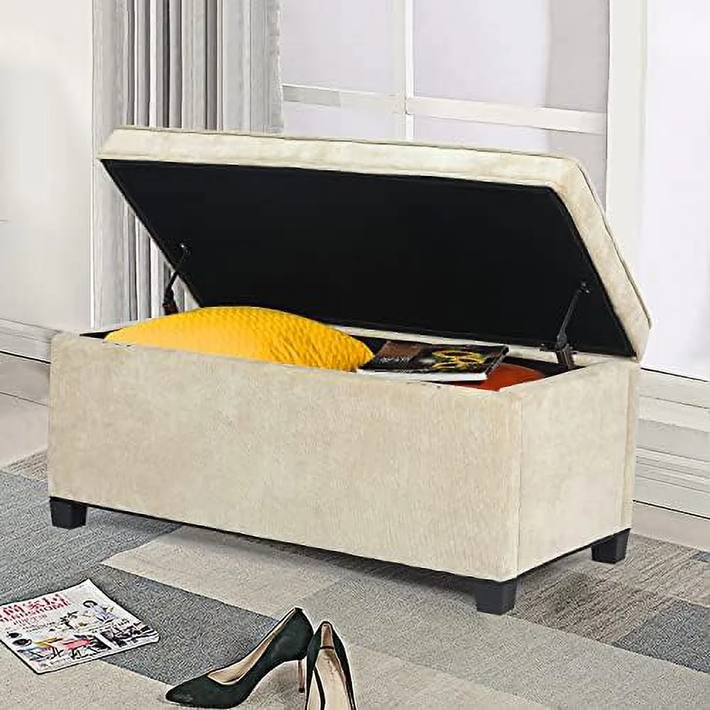 Rectangular Ottoman Bench Upholstered Ottoman Footrest Stool with Wooden Legs Coffee Table Toy Chests for Living Room Bedroom Entryway