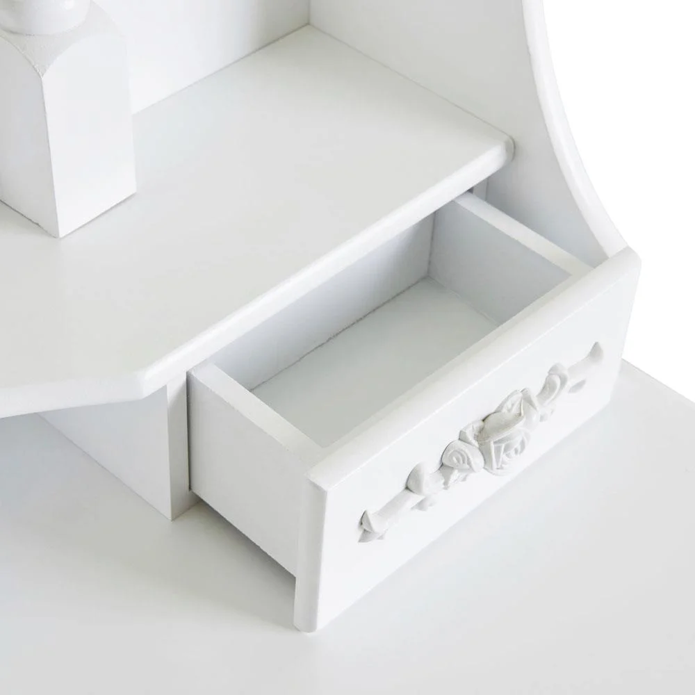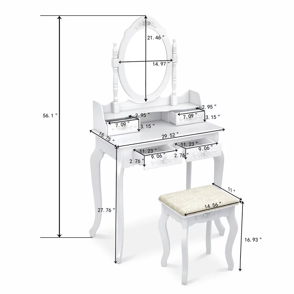 SalonMore White Vanity Table Set ,Makeup Vanity Dressing Table with 4 Drawers & Padded Cushioned Stool, Gift for Mom, Girls, Women, Bedroom