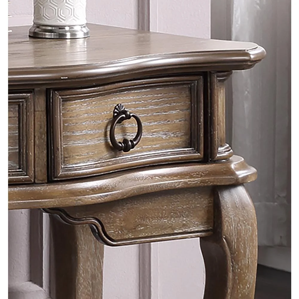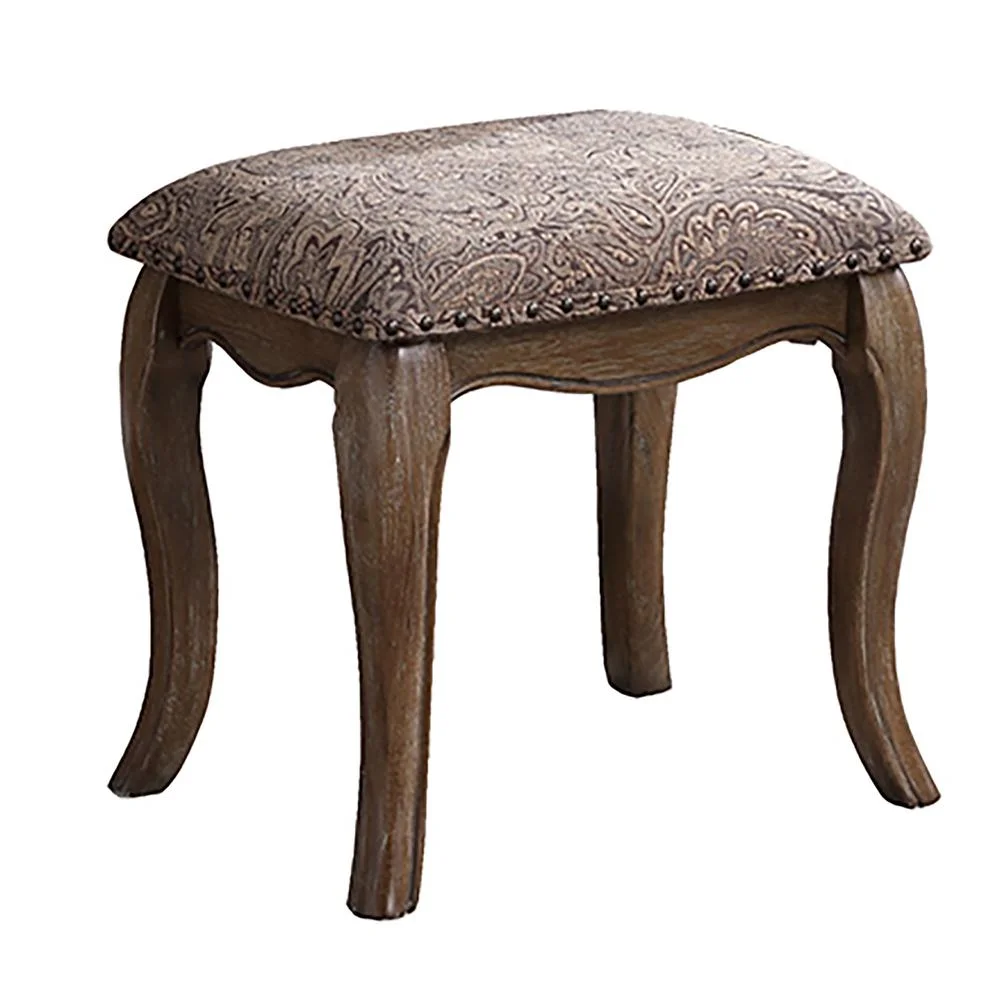 Poundex Poundex Wooden Makeup Vanity Set Desk, Mirror and Stool - Antique Oak