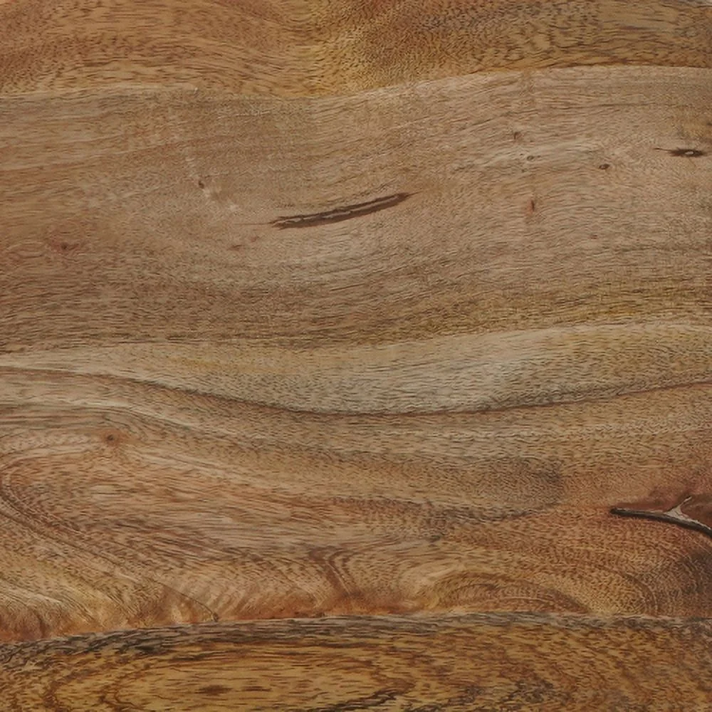 24 Inch Handcrafted Backless Barstool, Natural Brown Mango Wood Thick Saddle Seat, Black Iron Base