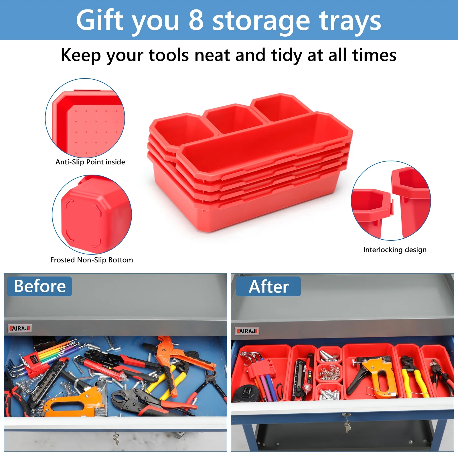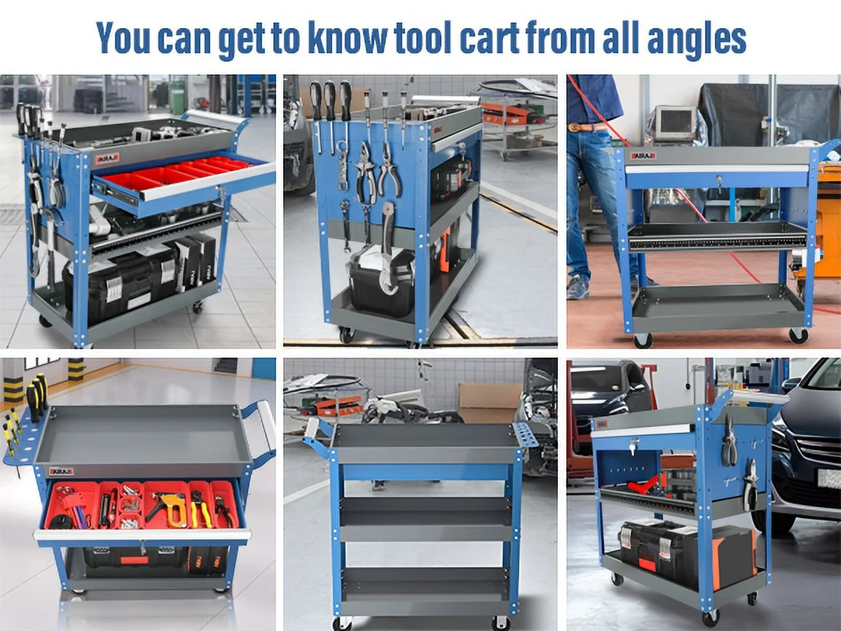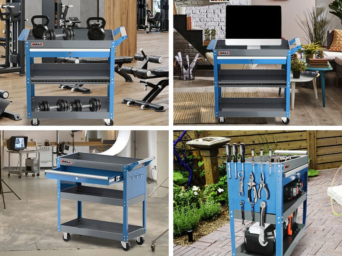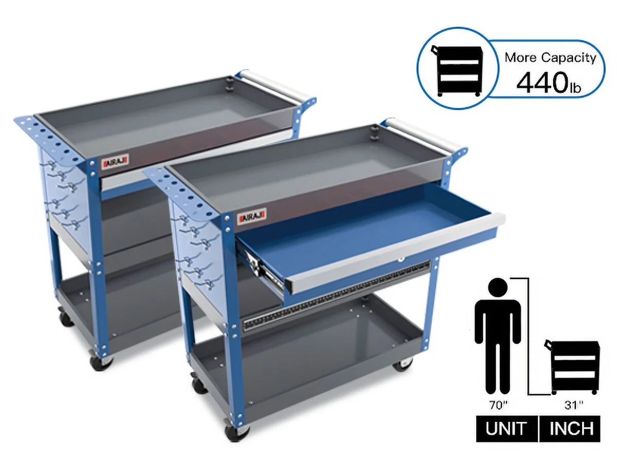 AIRAJ Tool Trolley for Robust 3-Stores,with Hook for Hanging,Non-slip Pearl Set,Ergonomic Handles,Rubber Brake Wheels,Tool Trolley for Home,Workshop Trolley