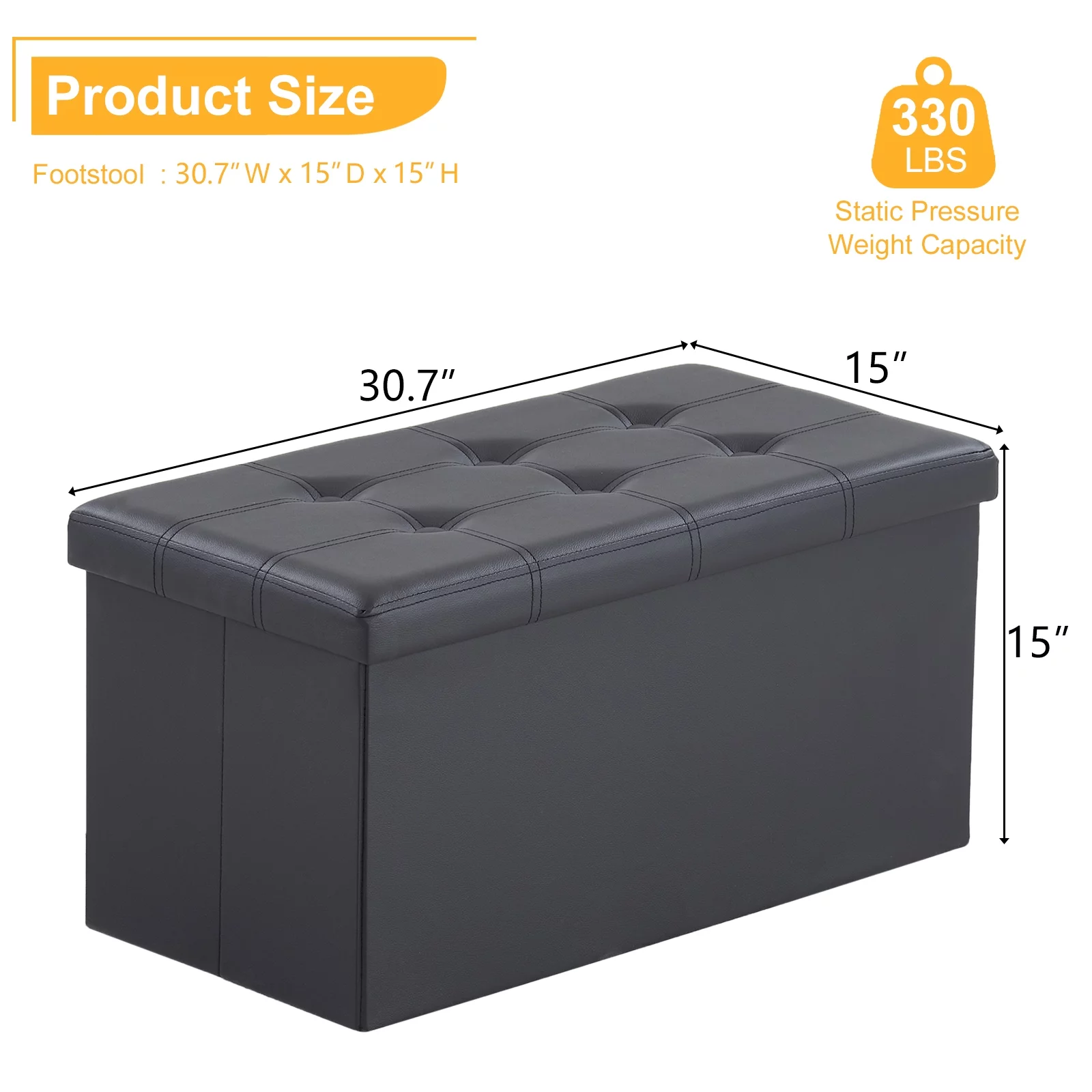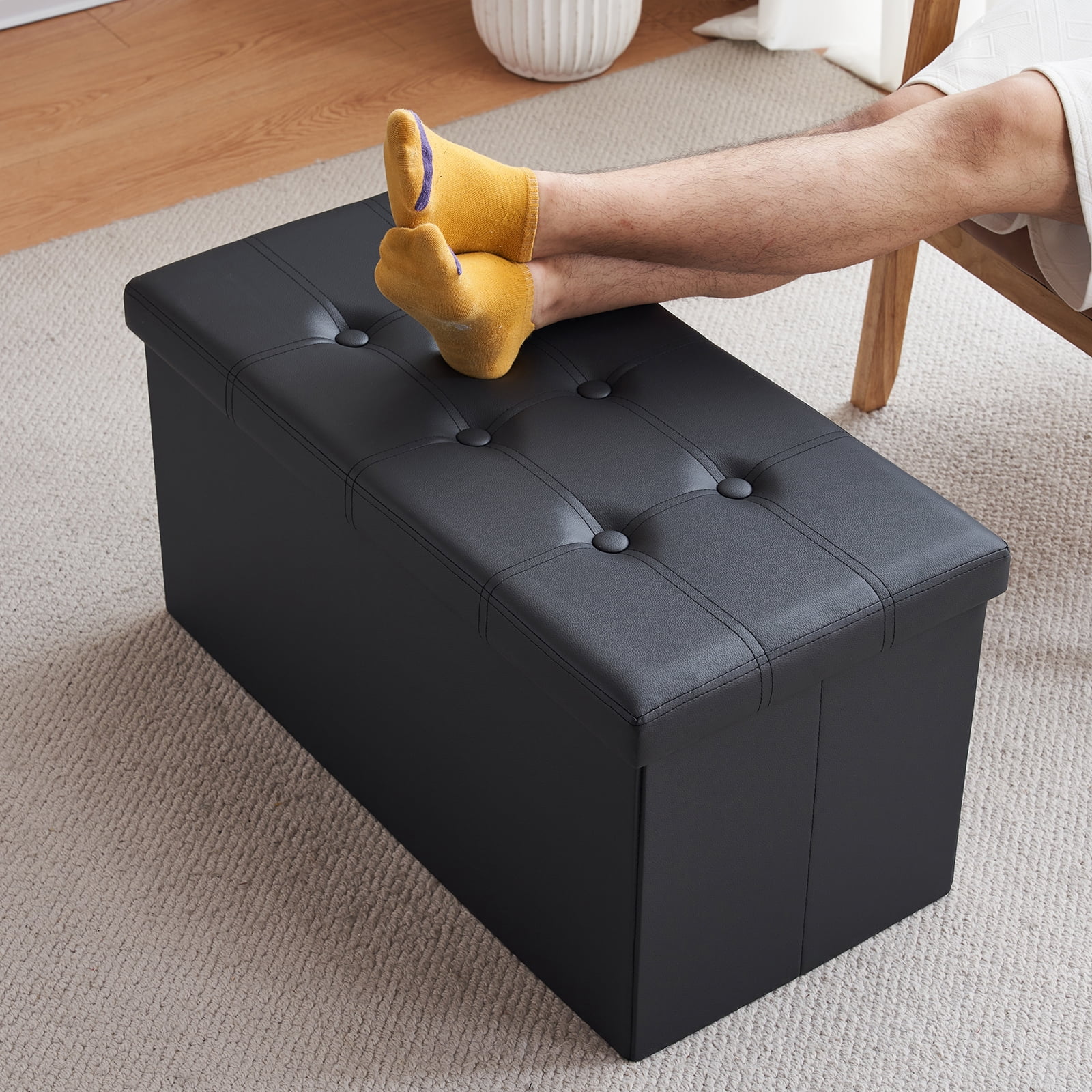 30 inches Folding Storage Ottoman Bench, Storage Chest, Foot Rest Stool,Black