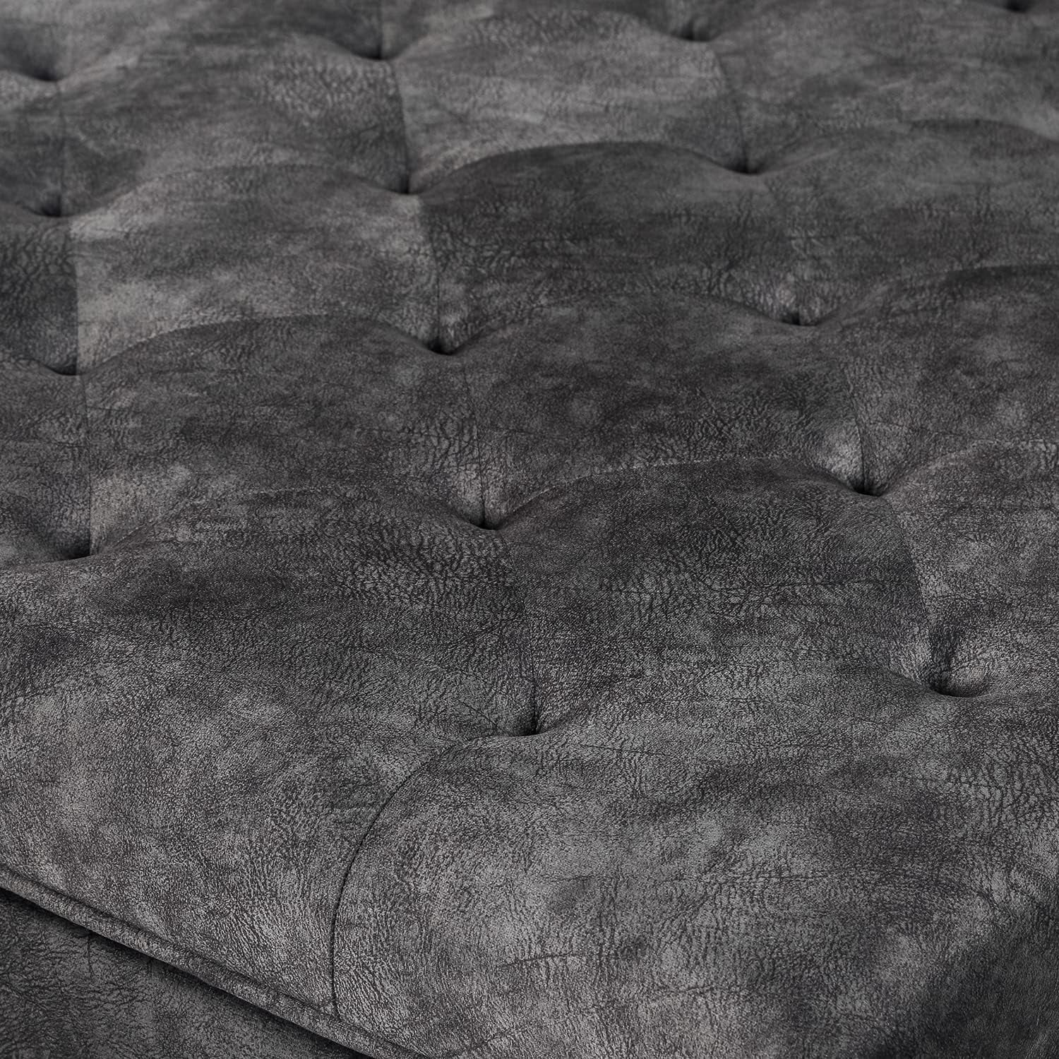 Storage Ottoman Bench For Living Room, Tufted Square Coffee Table Footstool Footrest With Wood Legs (Grey)