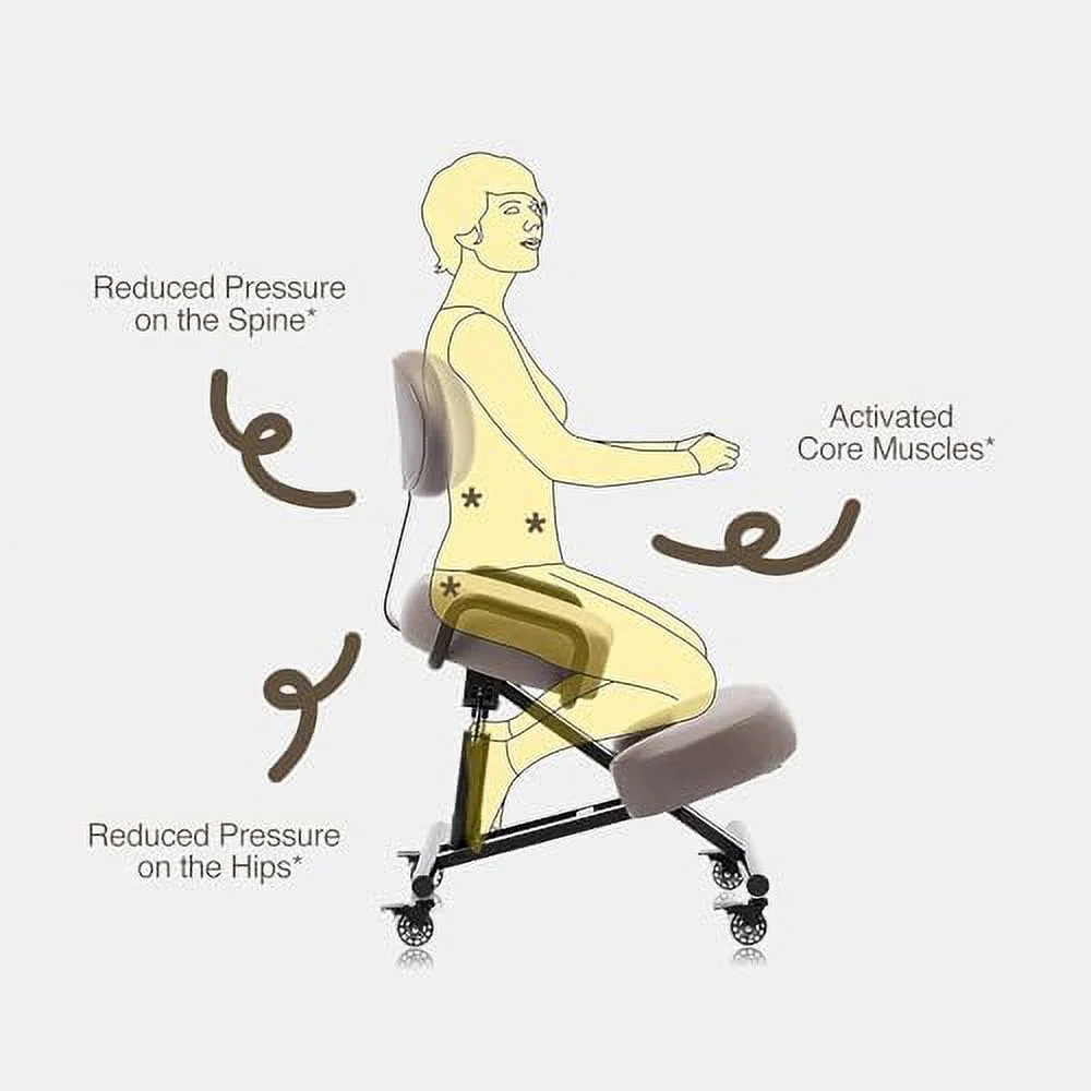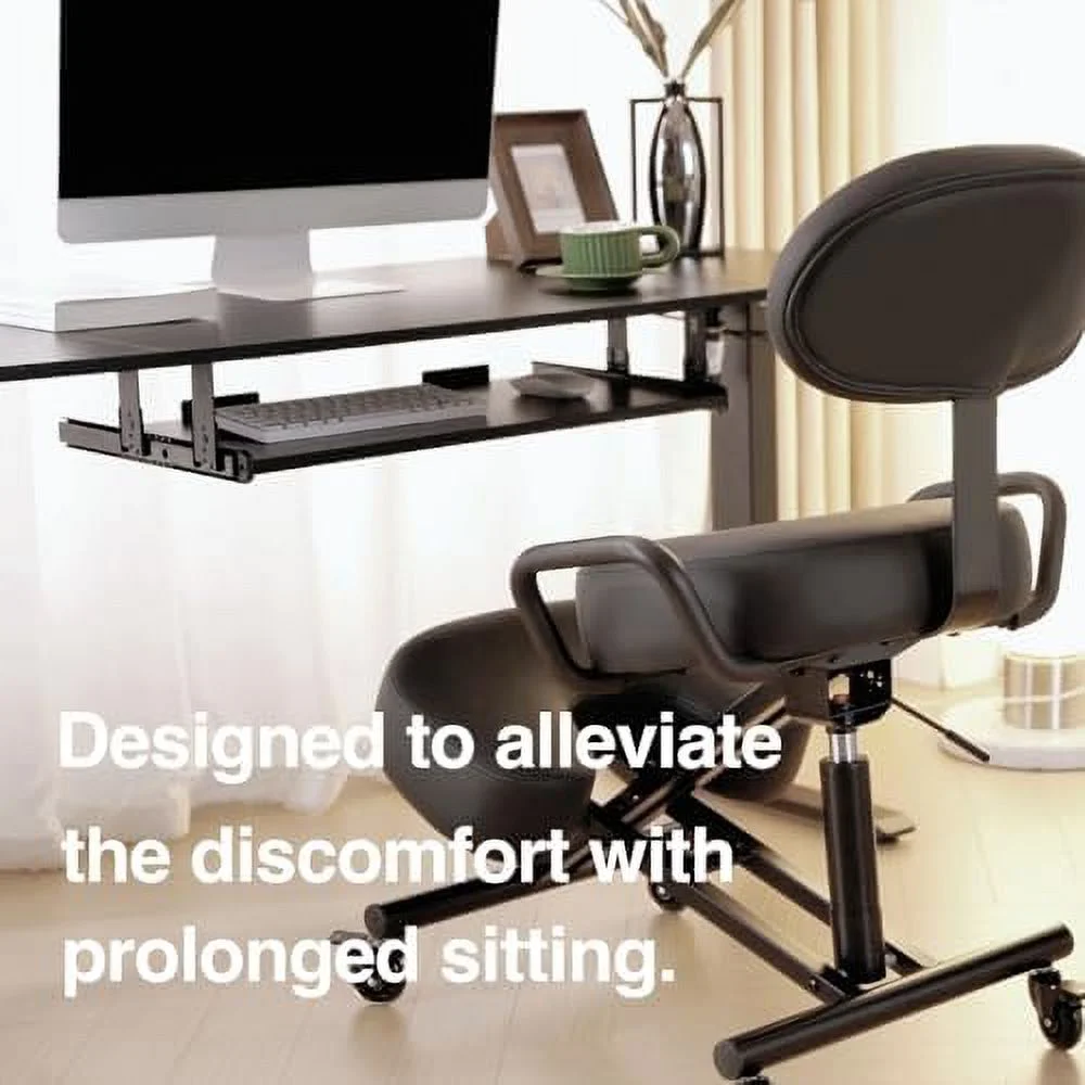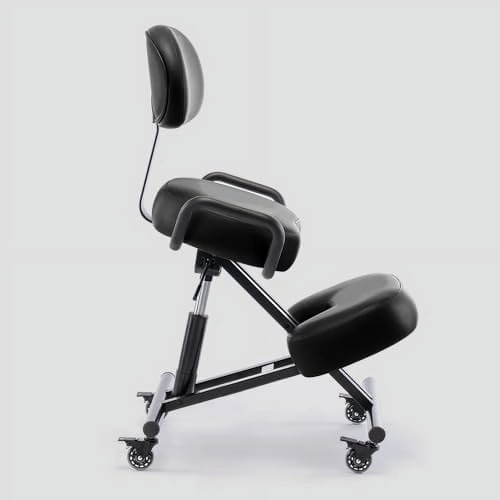 JOMA Kneeling Chair 512 AKONI Adjustable Stool for and Office Improve Your Posture Thick Comfortable Cushions Locking Wheels (with Backrest Black)