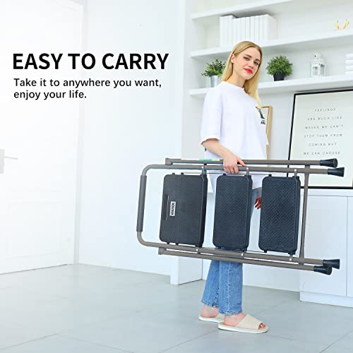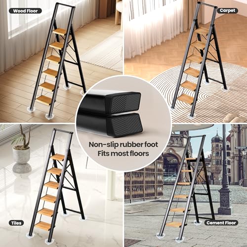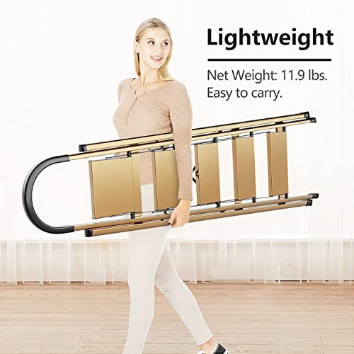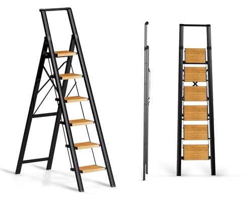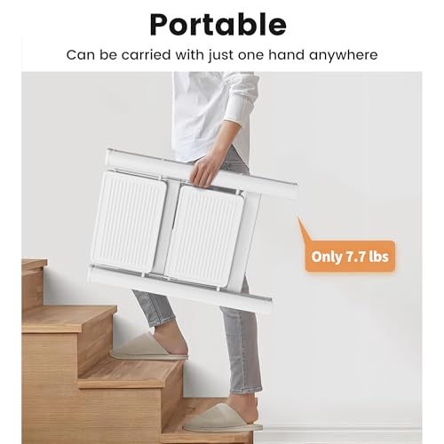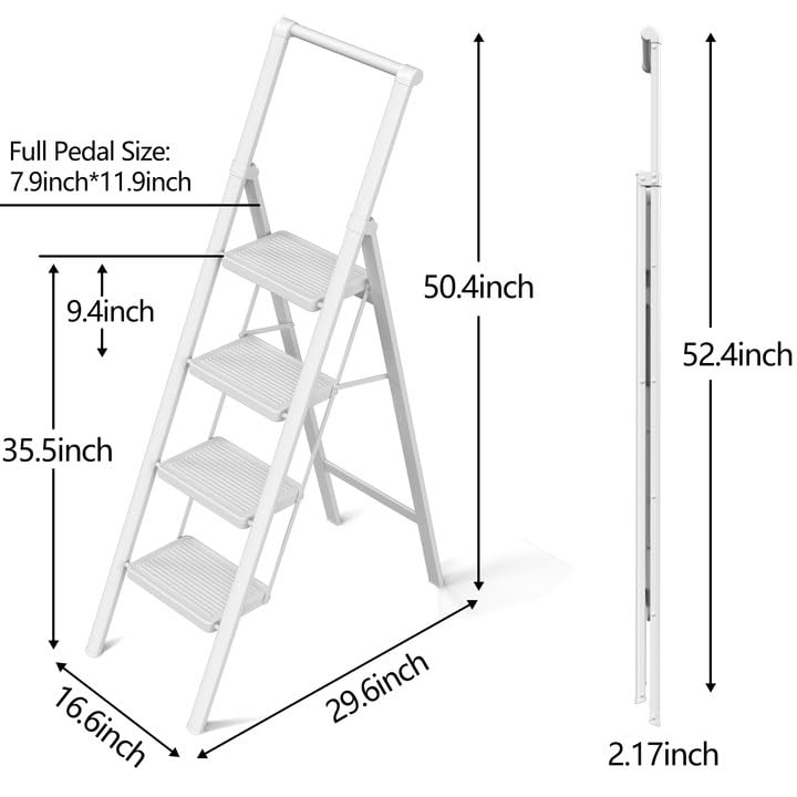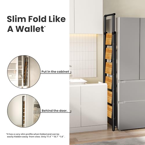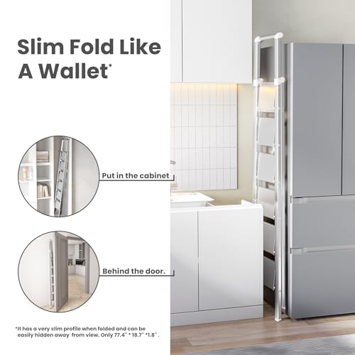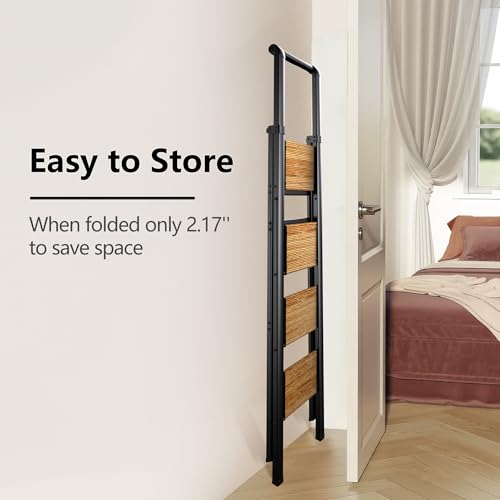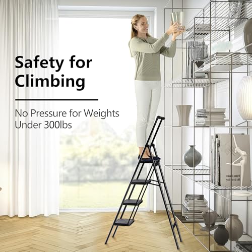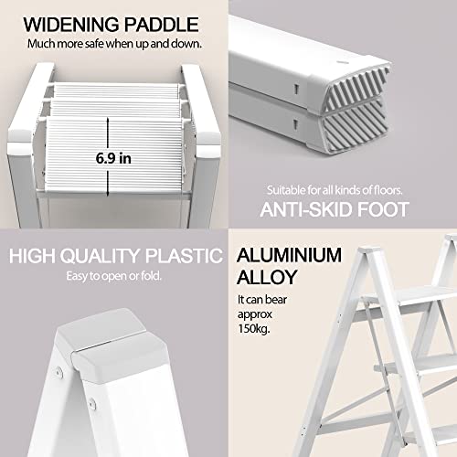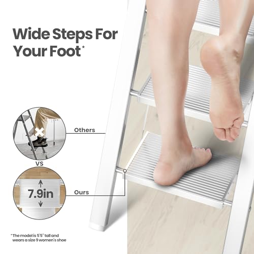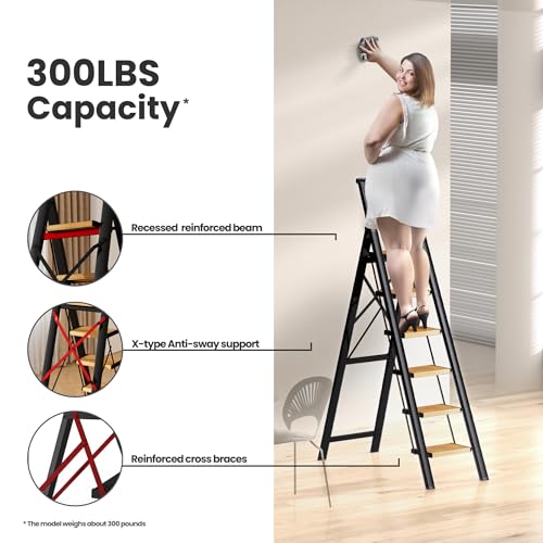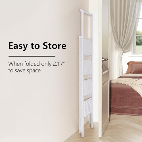XinSunho 5 Step Ladder, Retractable Handgrip Folding Step Stool with Anti-Slip Wide Pedal, Aluminum Stool Ladders 5 Steps, 330lbs Safety Household Ladder