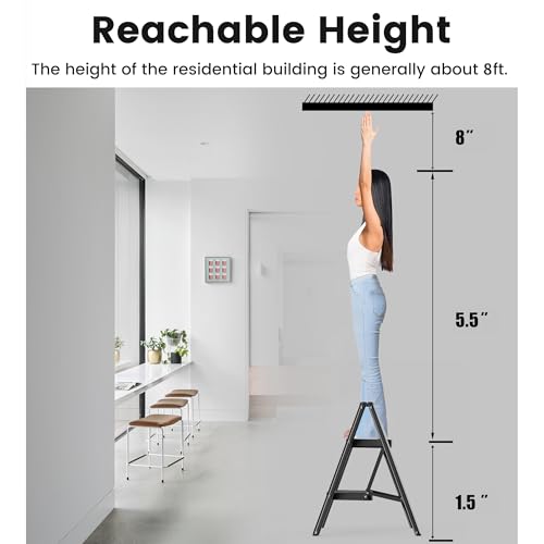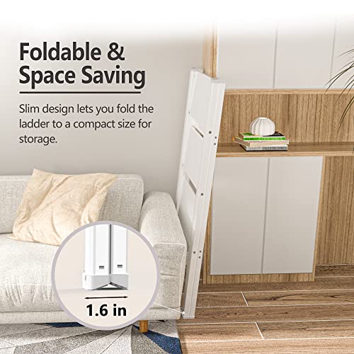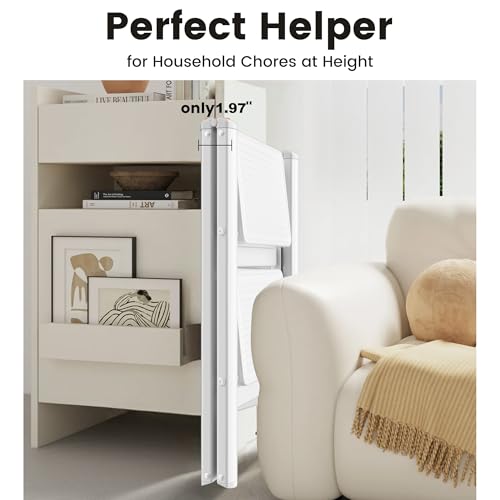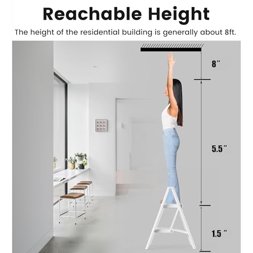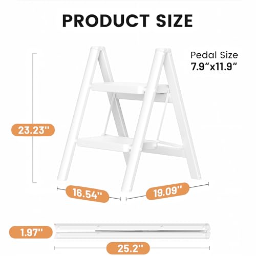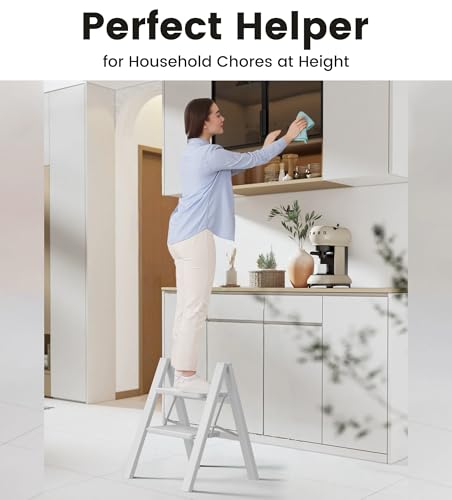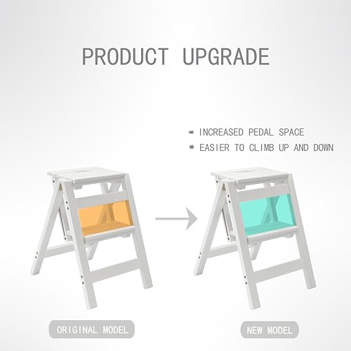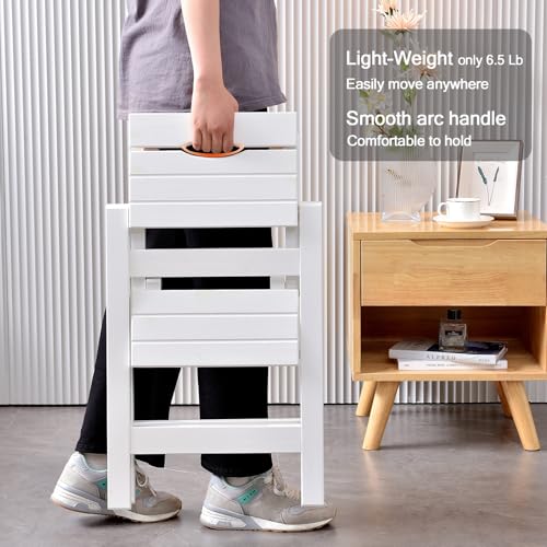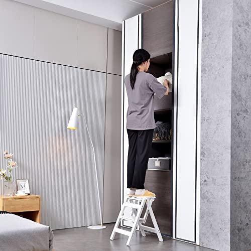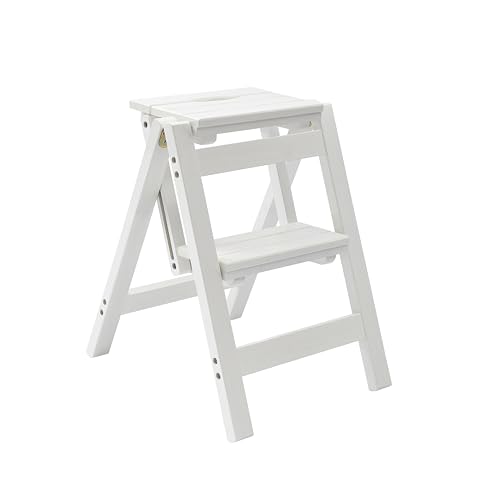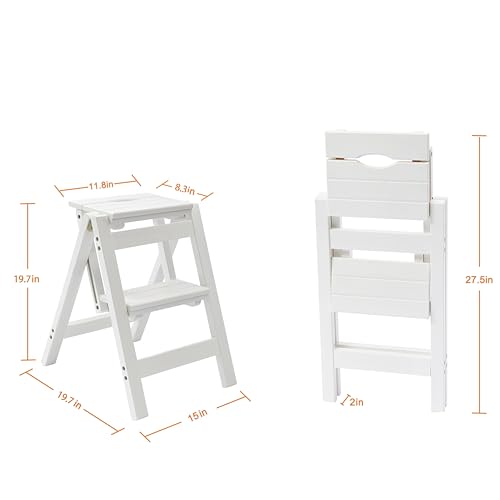 Step Stool Foldable, Folding Wooden Step Ladder, Multi-Use As Counter Chair/Kitchen Cabinet Stool Ladder/Closet Stool etc. Scientific Stable Structure, Helpful Step Stool for Home (2Step-White)
