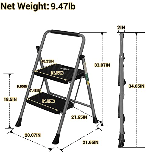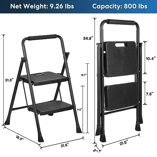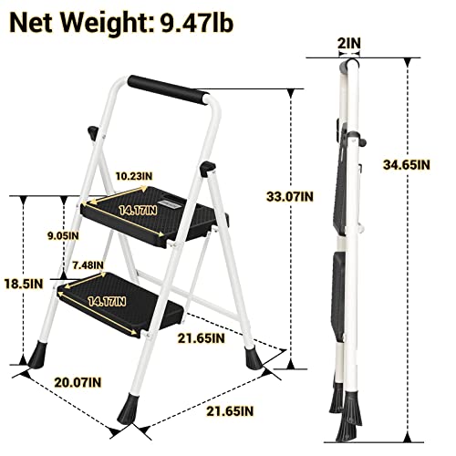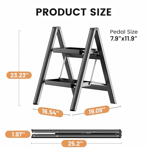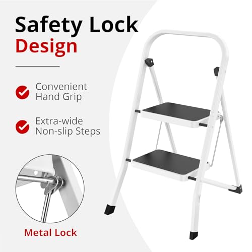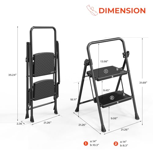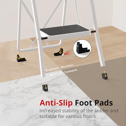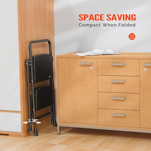 Simpli-Magic Step Ladder, 2 Step Stool Ergonomic Foldable with Wide Anti-Slip Pedal, Multi-Use for Household, Kitchen and Office (350 LBS Capacity)