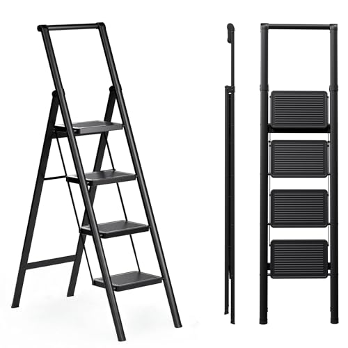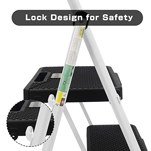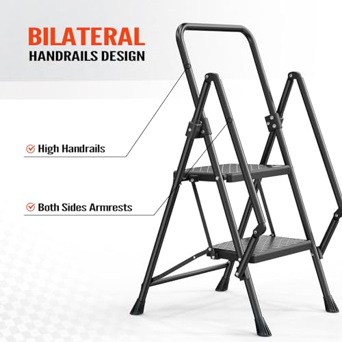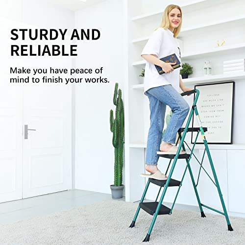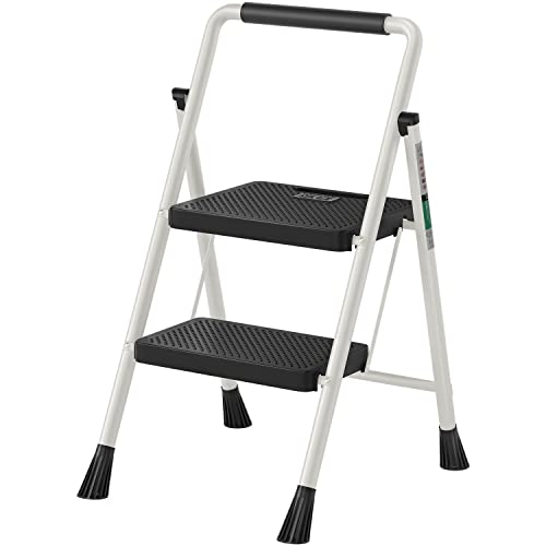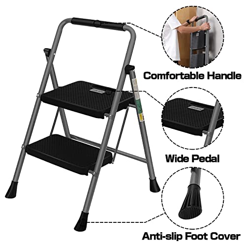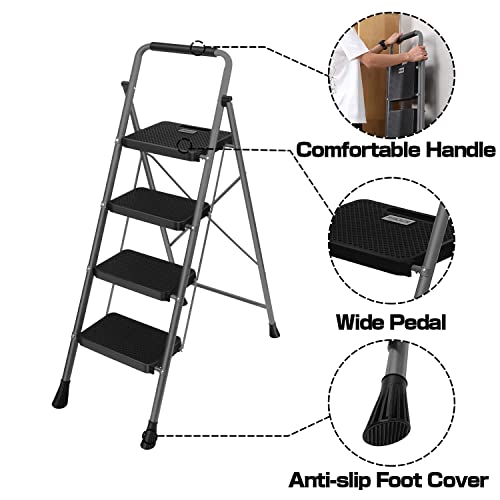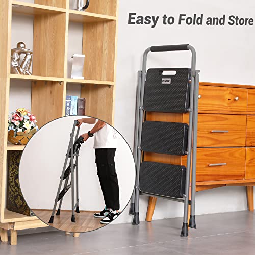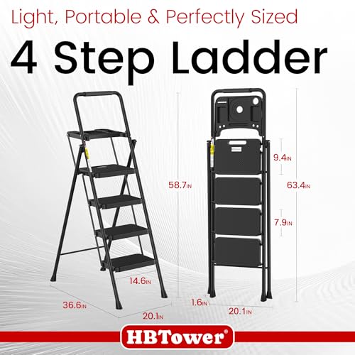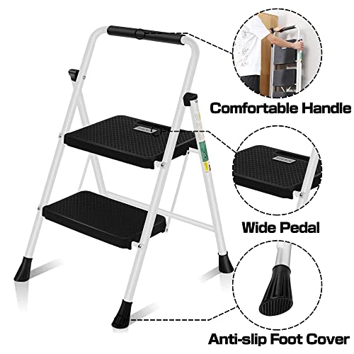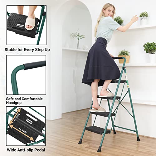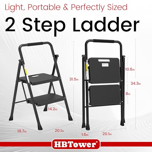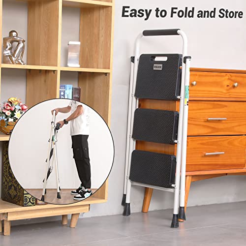 HBTower Step Ladder, Folding Step Stool with Wide Anti-Slip Pedal, Sturdy Steel Ladder, Convenient Handrail, Lightweight, Portable Steel Step Stool