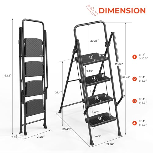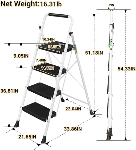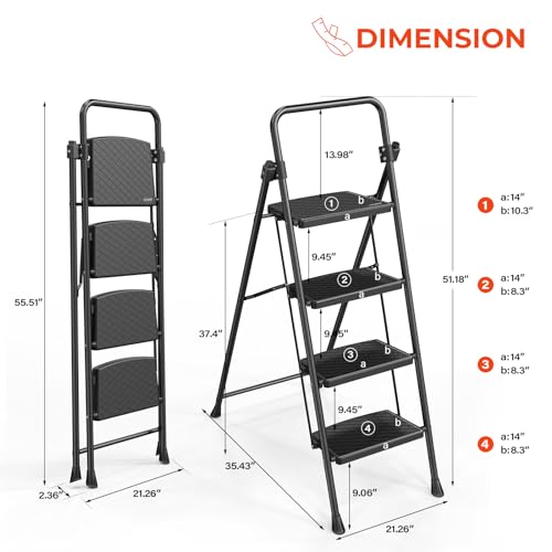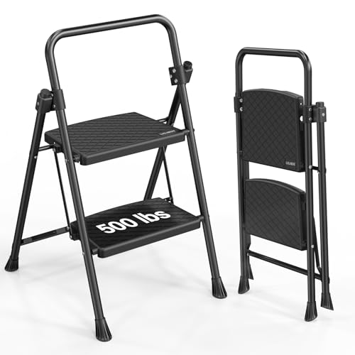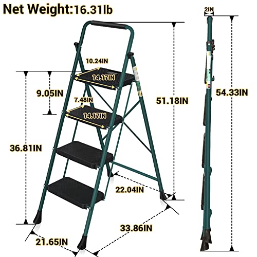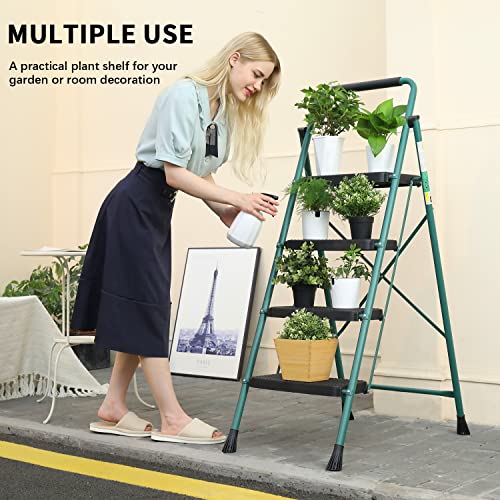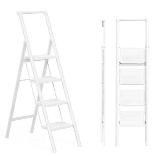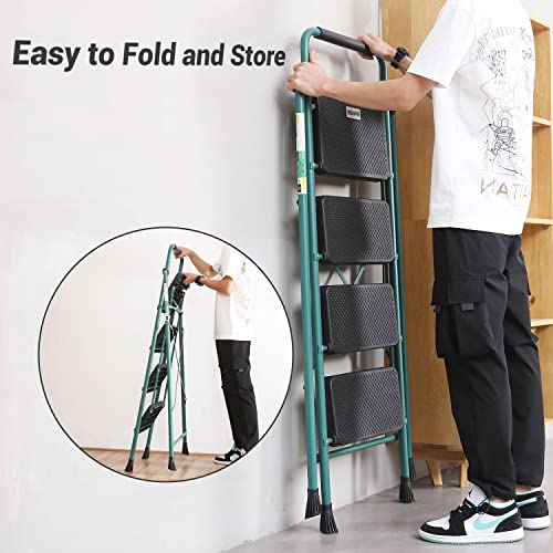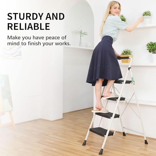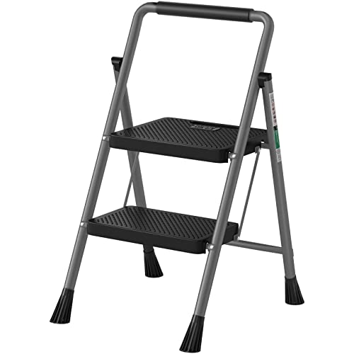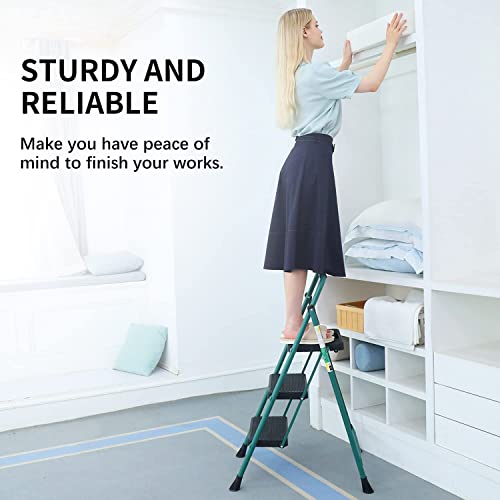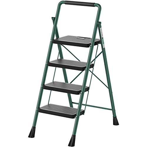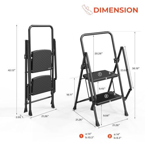 HBTower Step Ladder, Folding Step Stool with Wide Anti-Slip Pedal, Sturdy Steel Ladder, Convenient Handrail, Lightweight, Portable Steel Step Stool