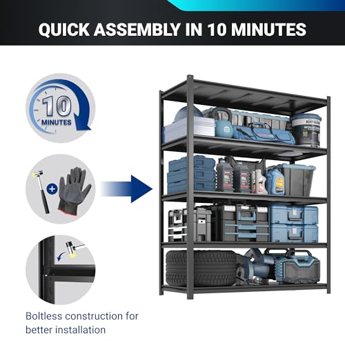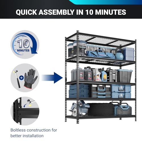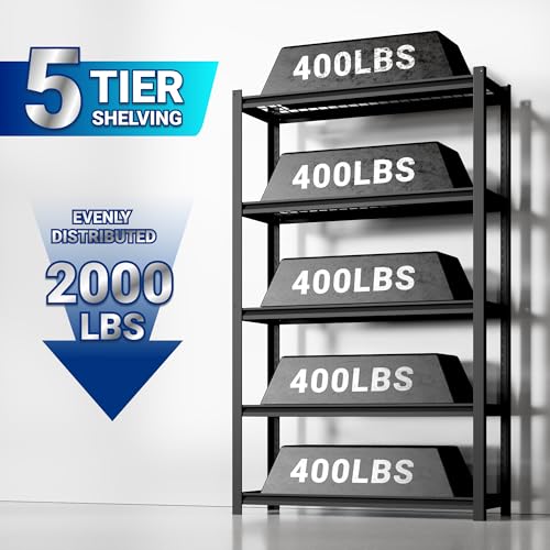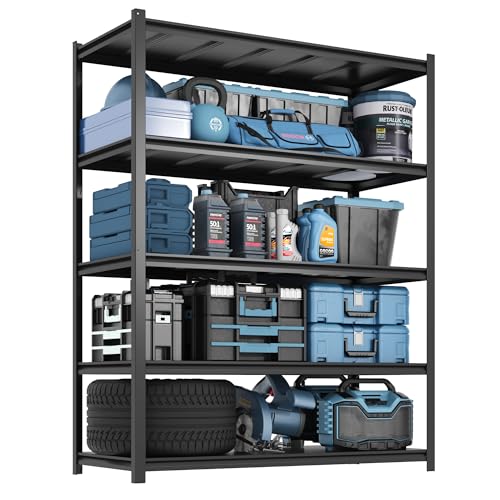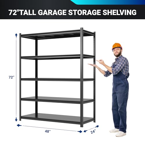 FLEXIMOUNTS Garage Shelving, Heavy Duty Shelving 2000 lbs, 5-Tier Garage Storage Shelves,Industrial Shelves for Heavy Tools and Equipment, 48" W x 24" D x 72" H