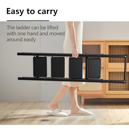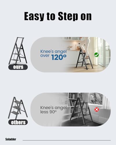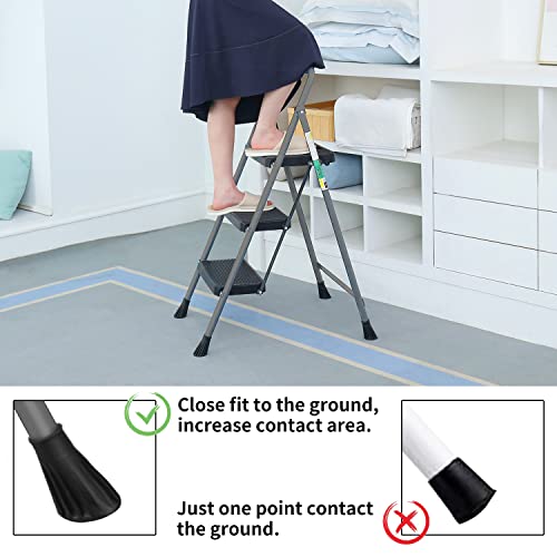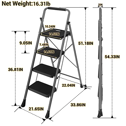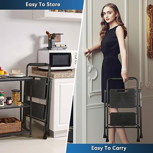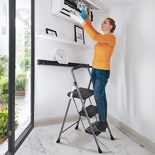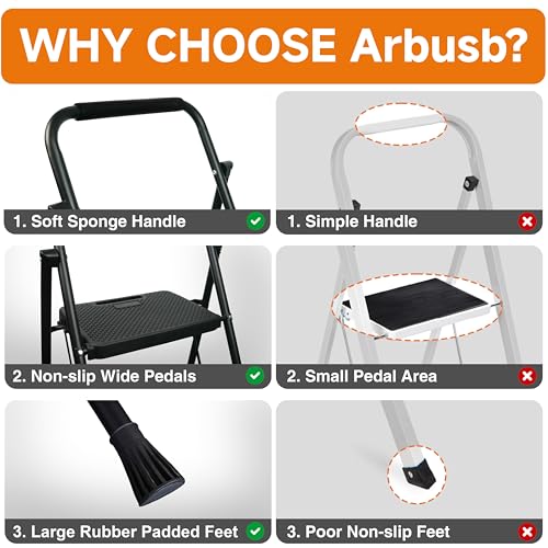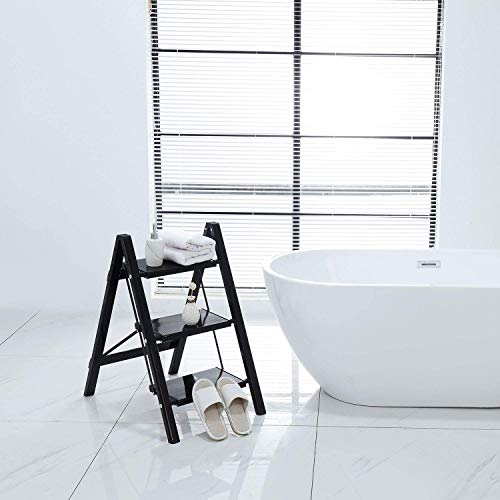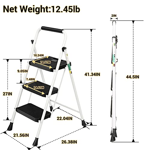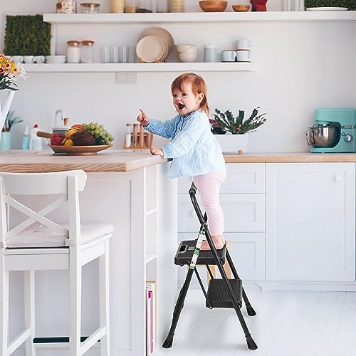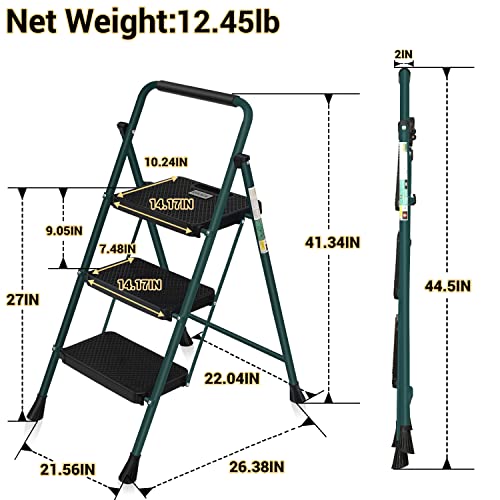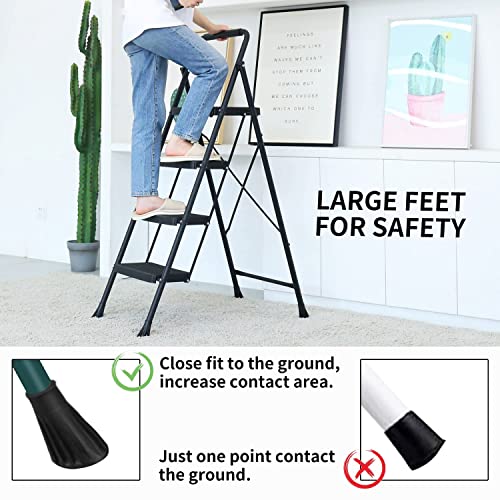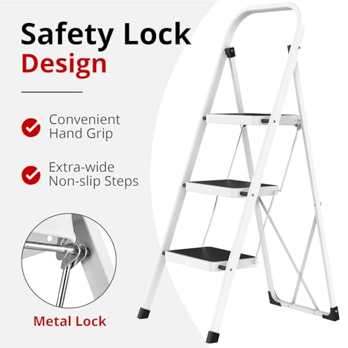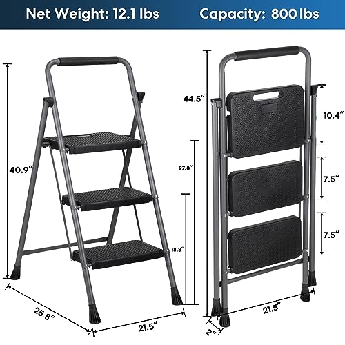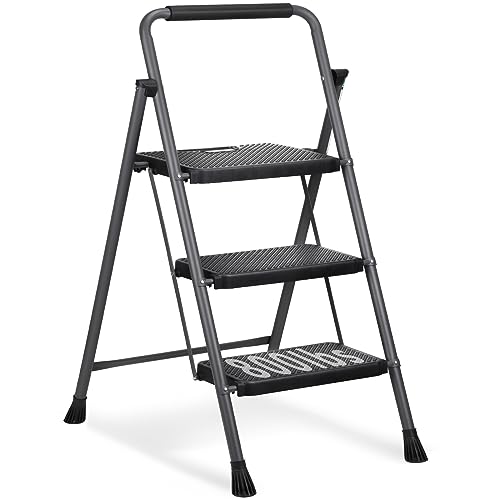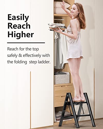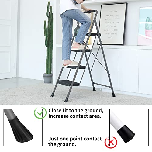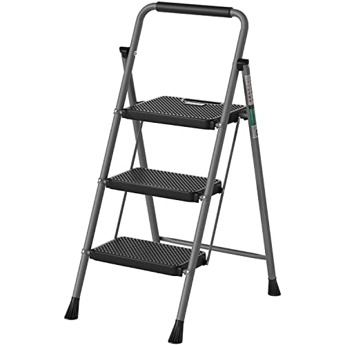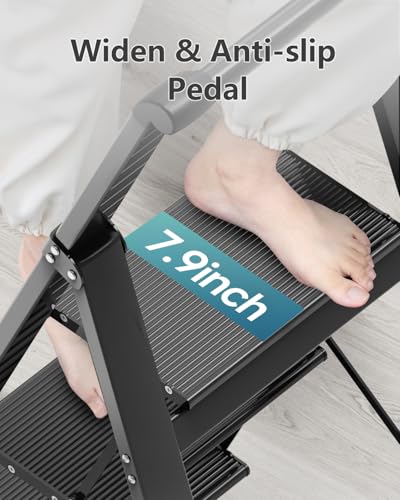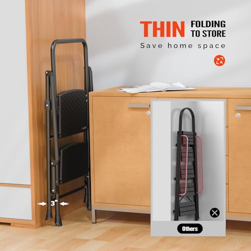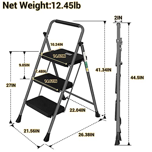 LUISLADDERS 3 Step Ladder with Handrails, Folding Step Stool with Widened Anti-Slip Pedal, 500lbs Lightweight Step Ladder 3 Step Folding, Multi-use for Home Kitchen Pantry Office, Black