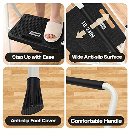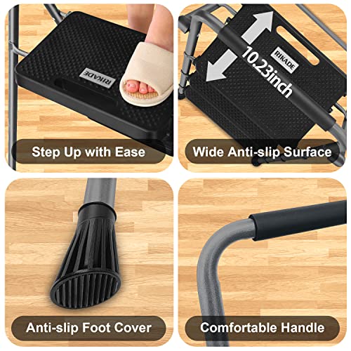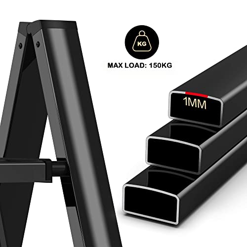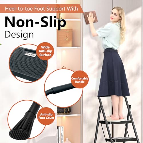3 Step Ladder, RIKADE Folding Step Stool, Step Stool with Wide Anti-Slip Pedal, Lightweight, Portable Folding Step Ladder with Handgrip, Multi-use Steel Ladder for Household and Office Black