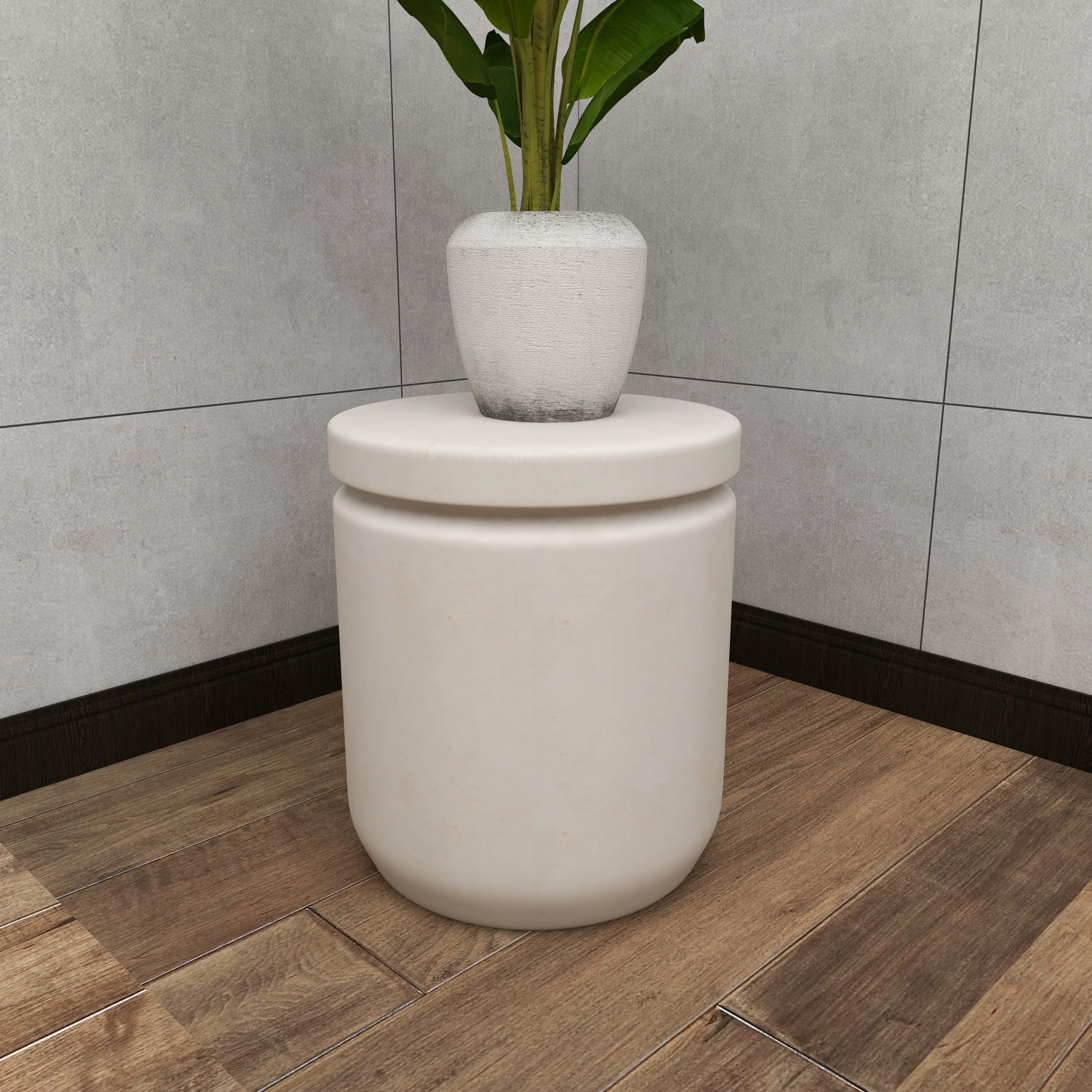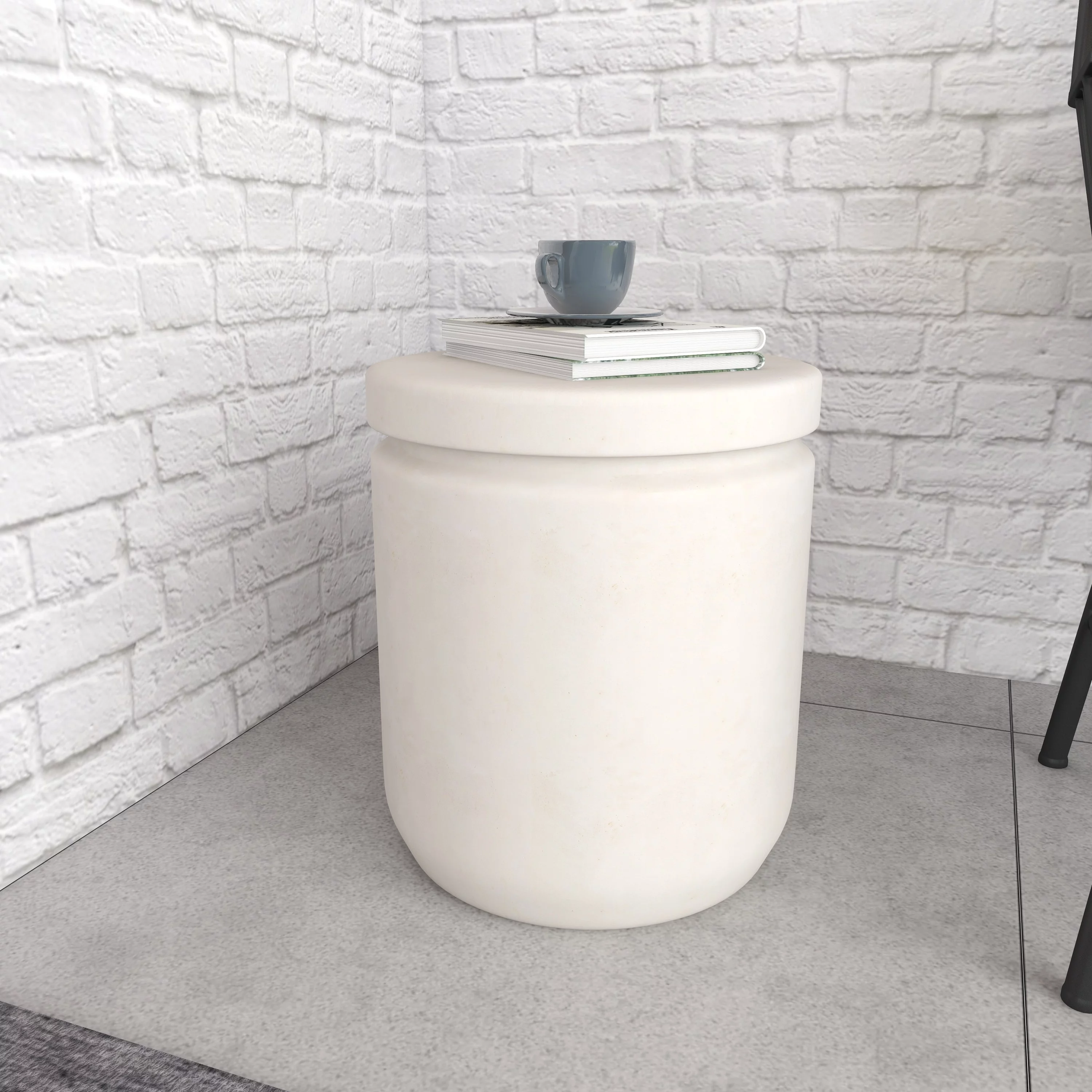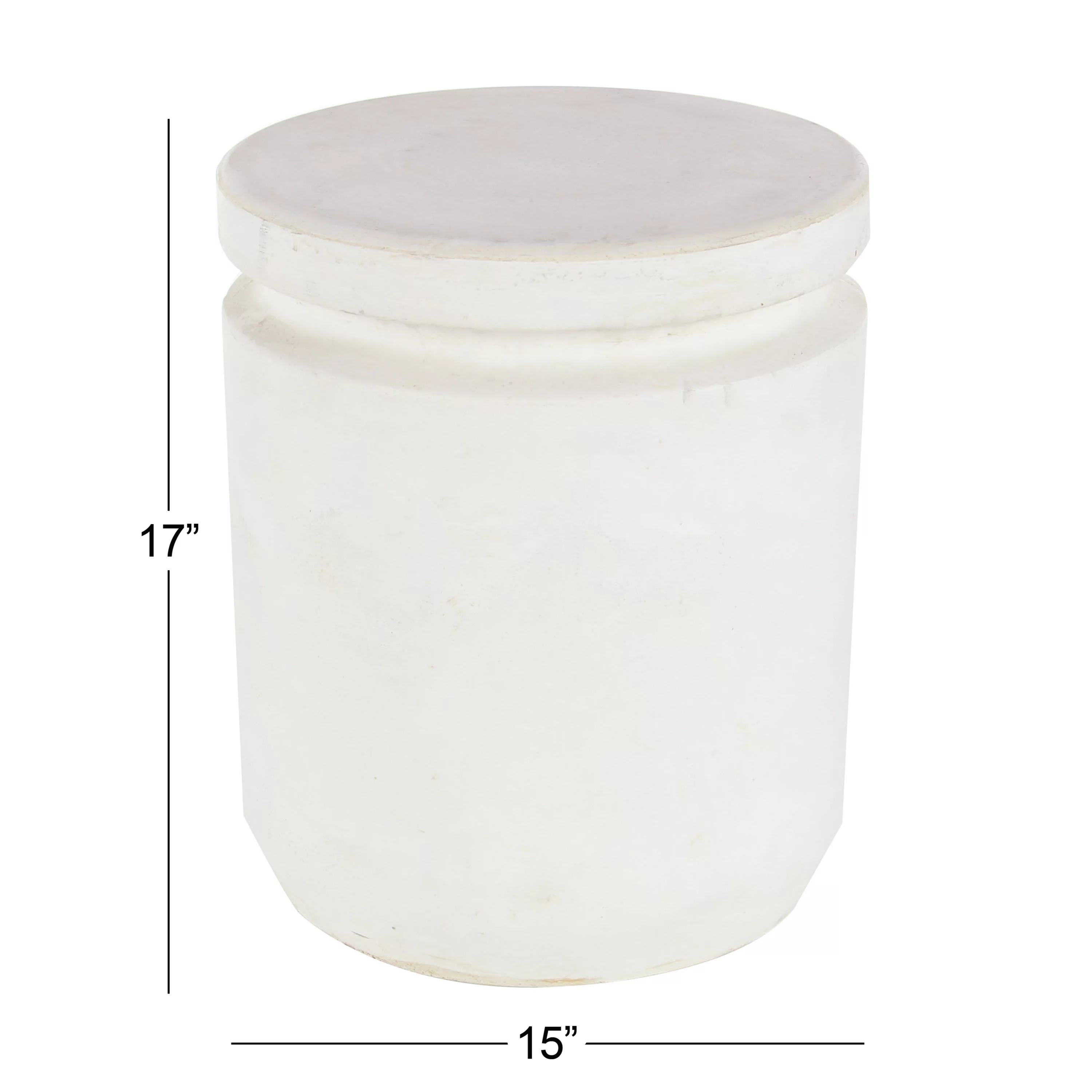 DecMode White Industrial Fiber Clay Outdoor Cylindrical Foot Stool, 15"W x 17"H