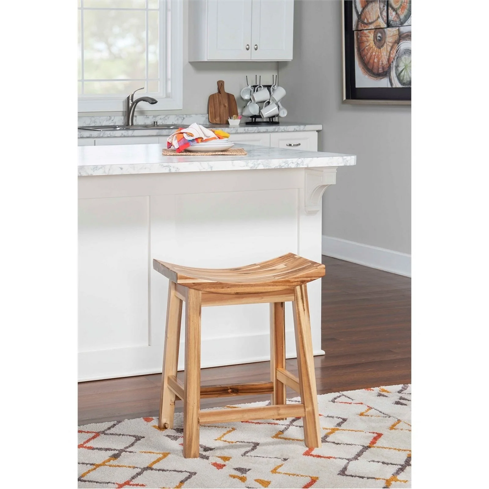 Pemberly Row 24" Transitional Wood Counter Stool in Light Natural Brown