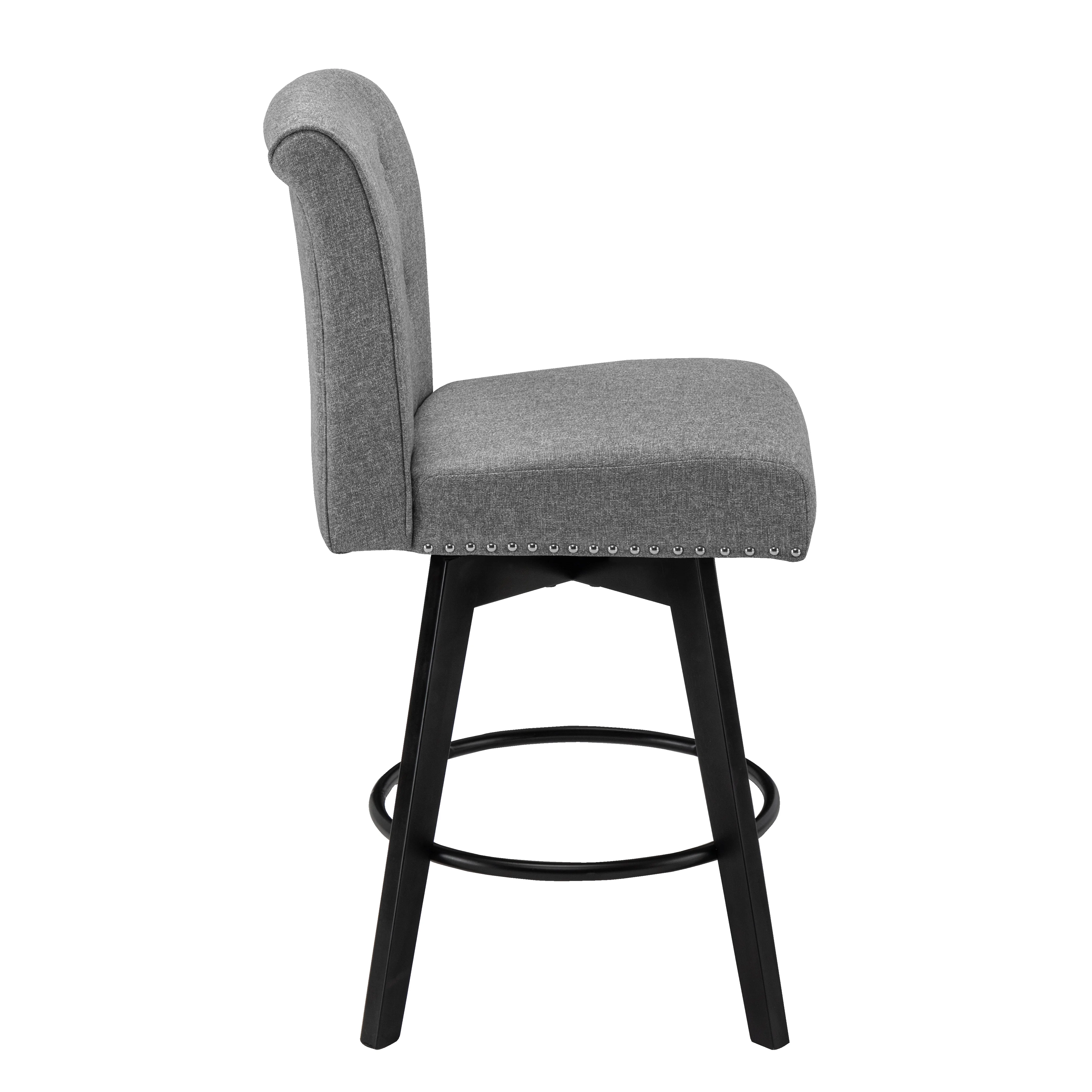 BARNUT Counter Stools,26"360 Free Swivel Counter Height Bar Stools with Back and Nail Head for Bar and Kitchen Island,Set of 2,Performance Fabric in Gray