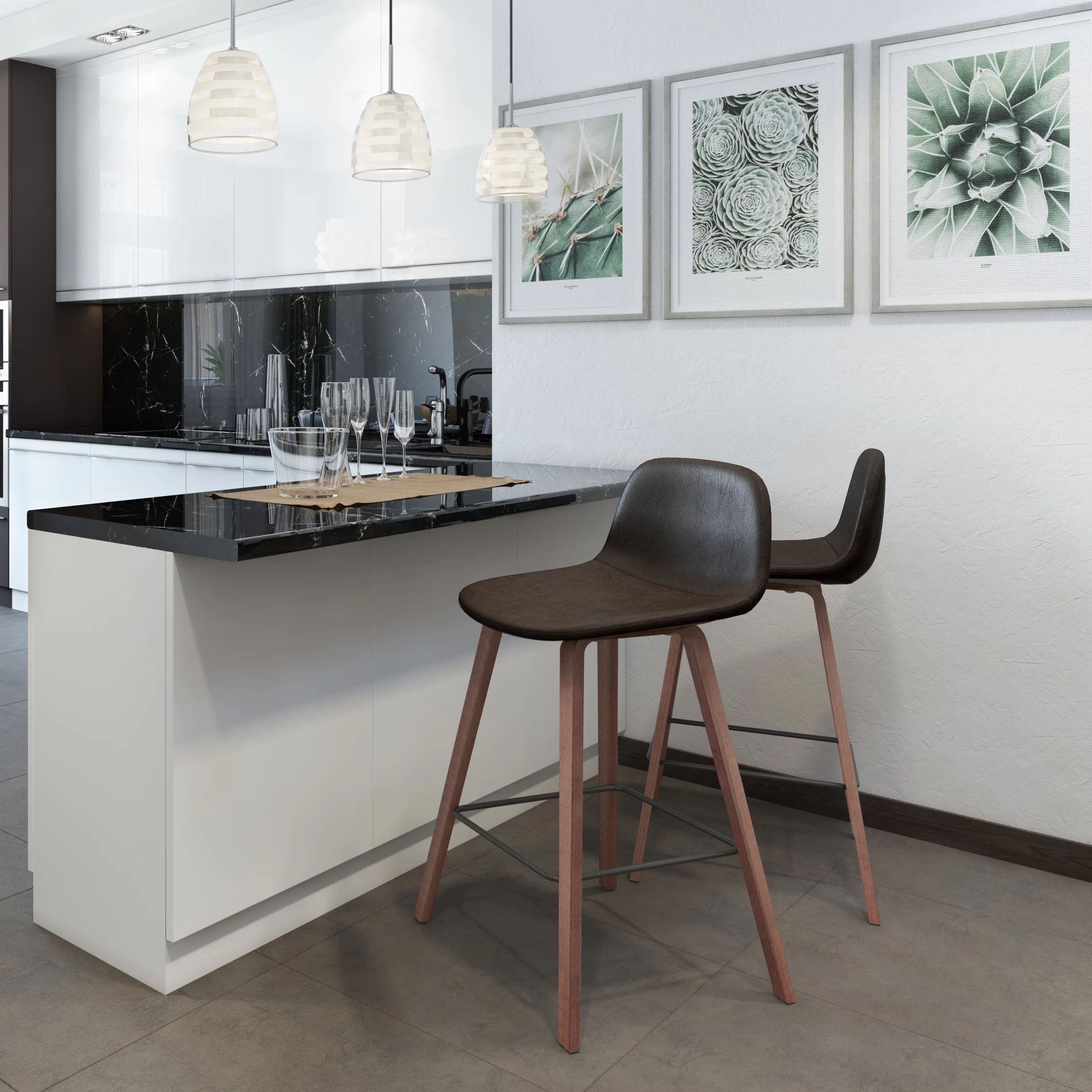 Simpli Home Addy Mid-Century Modern 26 " Counter Stool (Set of 2) in Distressed Brown Faux Leather