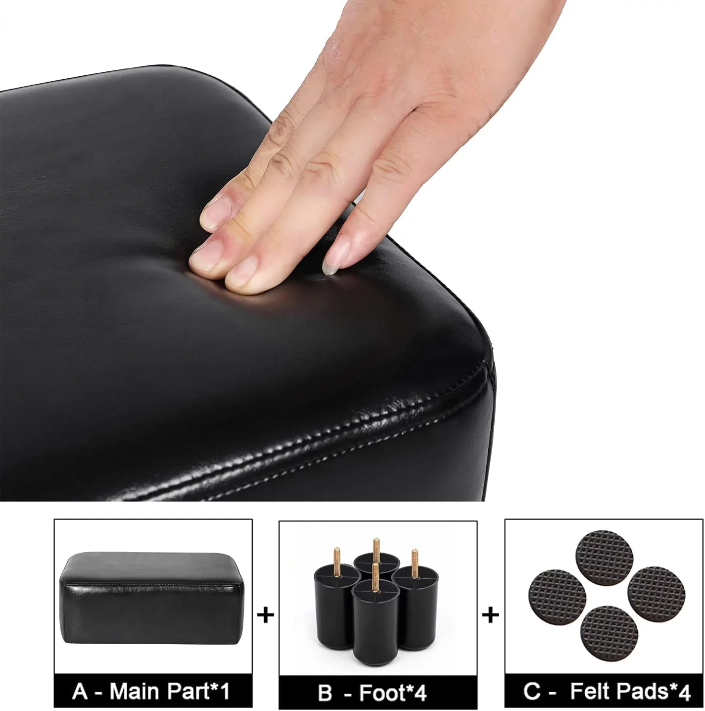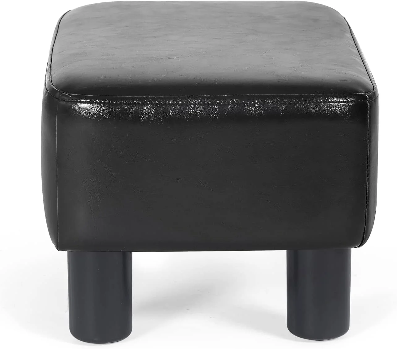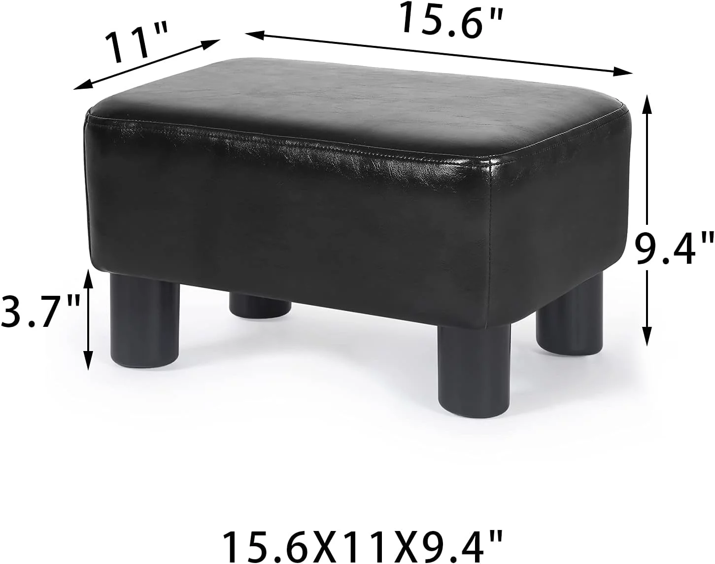 Footrest Ottoman Modern Small Rectangular Faux Leather Footstools For Living Room Bedroom Office, Black