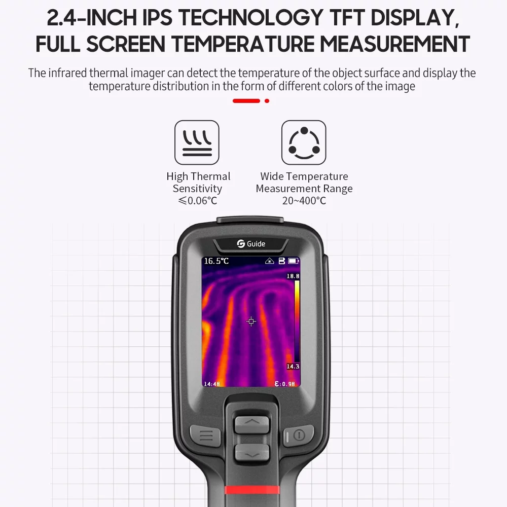 GUIDE T120 Entry-level Portable Thermal Camera 2000mAh Rechargeable Thermal Imager Non- Industrial Infrared Temperature Meter Thermographic Camera Handheld Thermal Imaging Tool 2.4-inch Larg