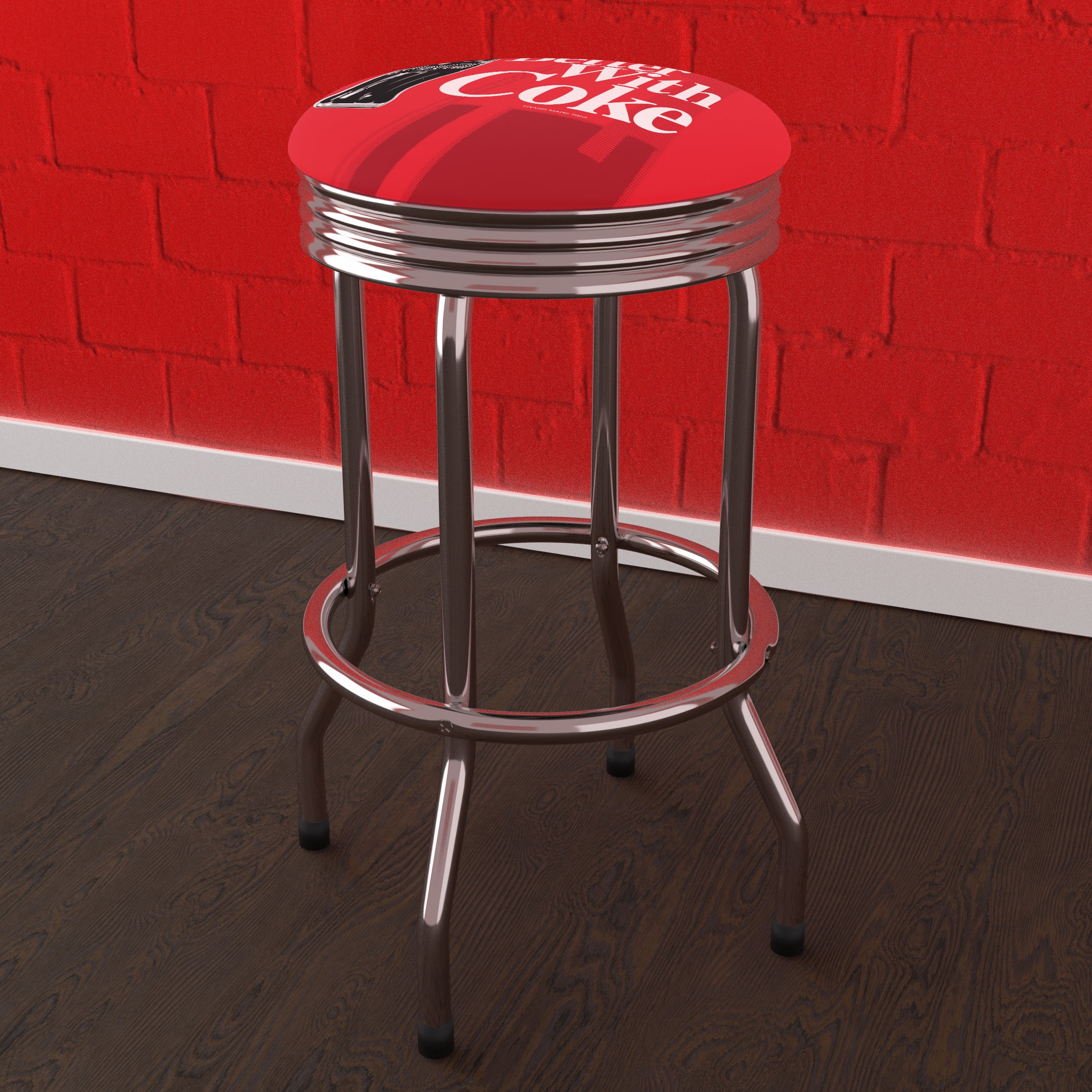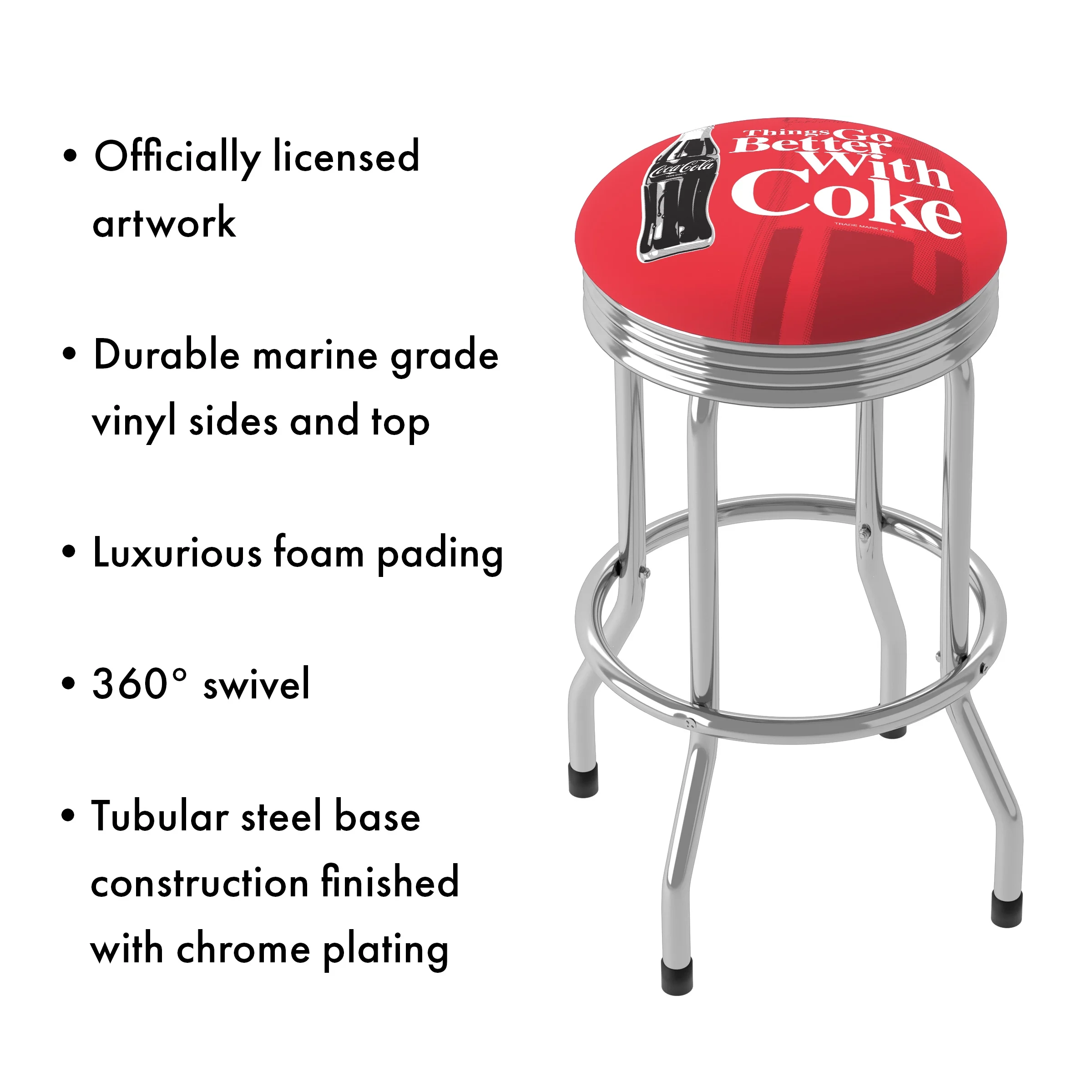 Trademark Gameroom Coca-Cola Things Go Better with Coke Bottle Art Chrome Ribbed Barstool