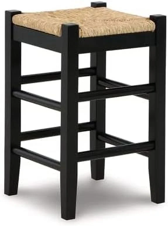 WAGEE Mirimyn Farmhouse 23.63" Counter Height Bar Stool with Woven Wicker Seats, 2 Count, Black & Light Brown