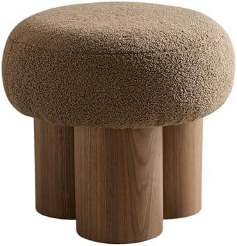 RUNFAYBIU MEETAKING Small Round Foot Stool Teddy Fabric Footrest Ottoman Stool with Non-Skid Legs Modern Footstools Step for Couch Desk Office Living Room (Brown)