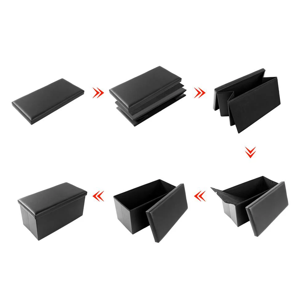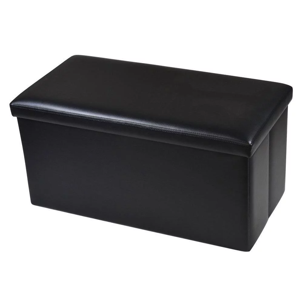 SamyoHome Faux Ottoman Leather Folding Footstool Home Organizer Rectangle Storage Furniture Black