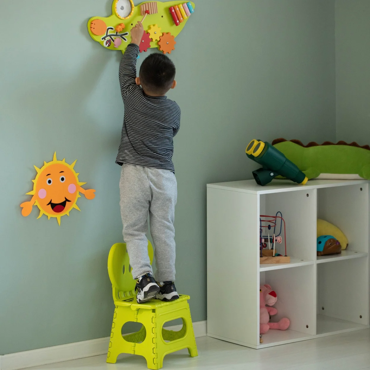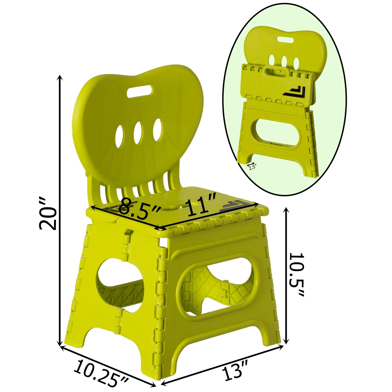 Basicwise Plastic Foldable Step Stool with Back Support, Heart Shaped Backrest, Portable Chair with Handle, Kids Stepping Stool and Bathroom Stool, Collapsible Step Stool, Green
