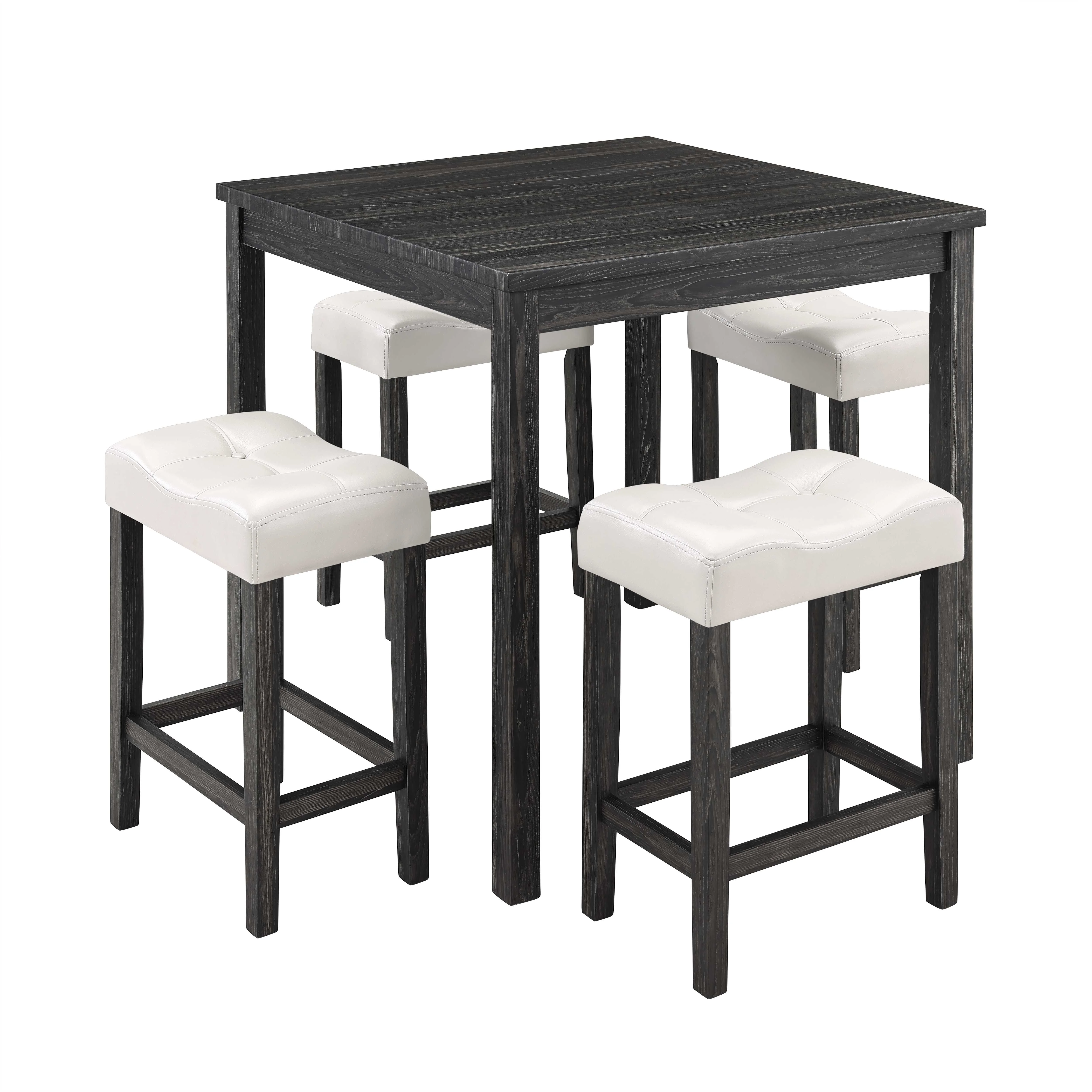 36" Dining Table Set for 4, Industrial Counter Height 5-Piece Dining Table Set with PU Leather Cushion, Wood Kitchen Table Set with 4 stools for Small Places