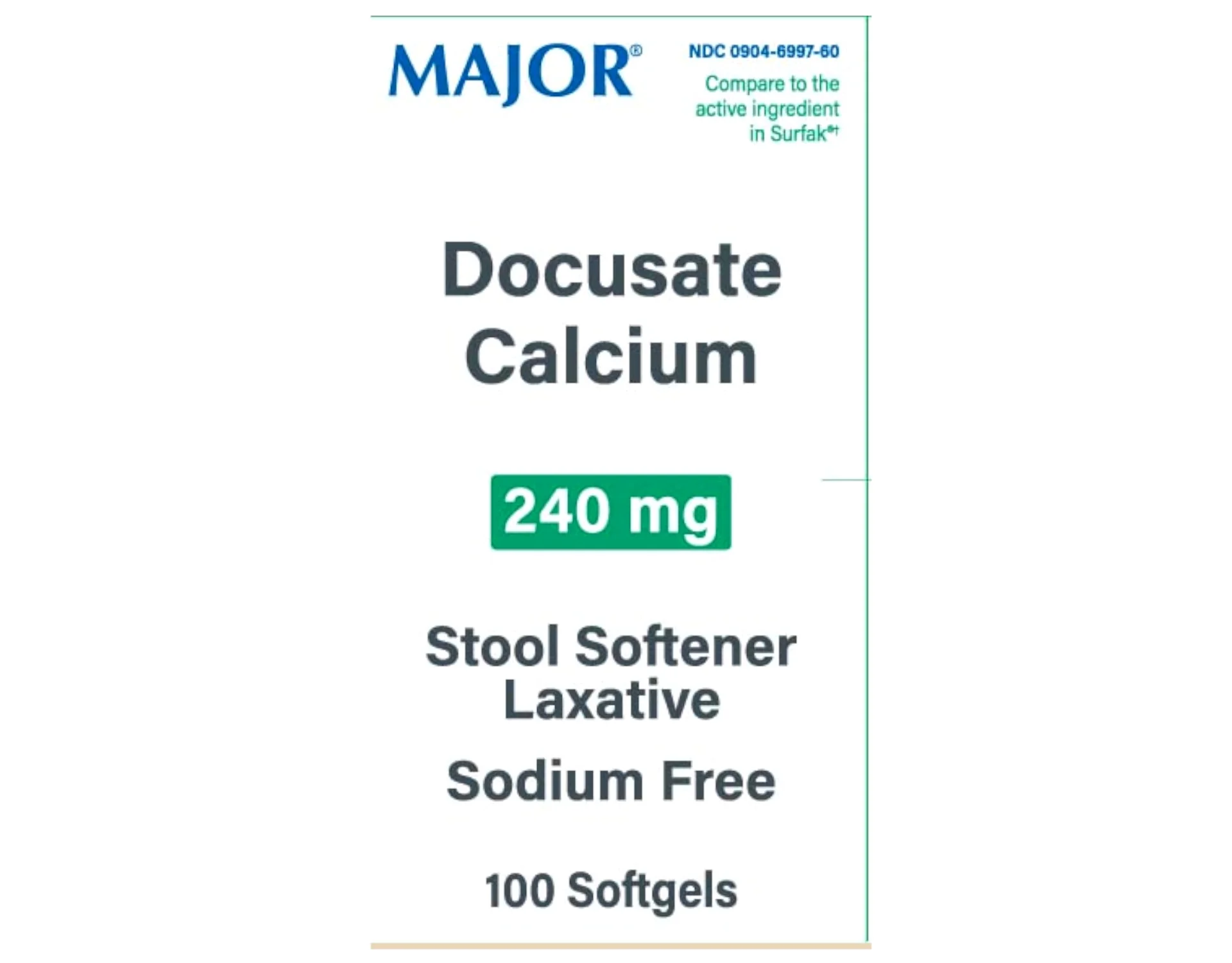 4 Pack - Major Docusate Calcium 240mg Stool Softener Laxative Softgels, 100 Count