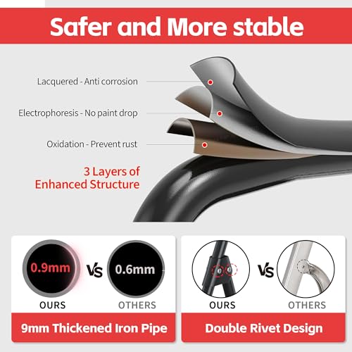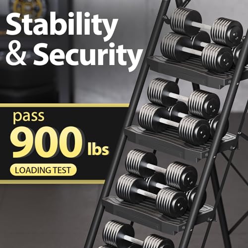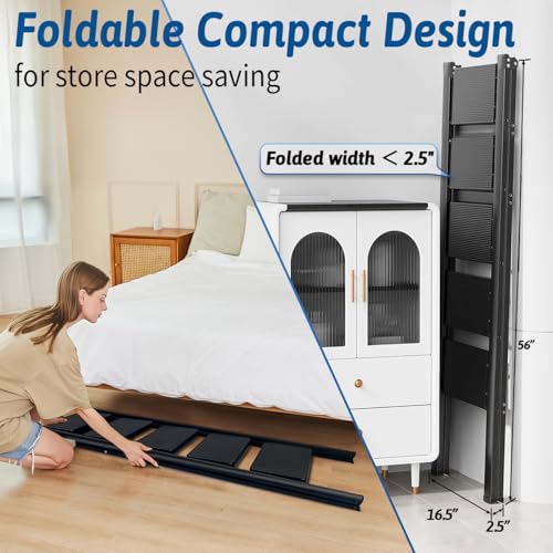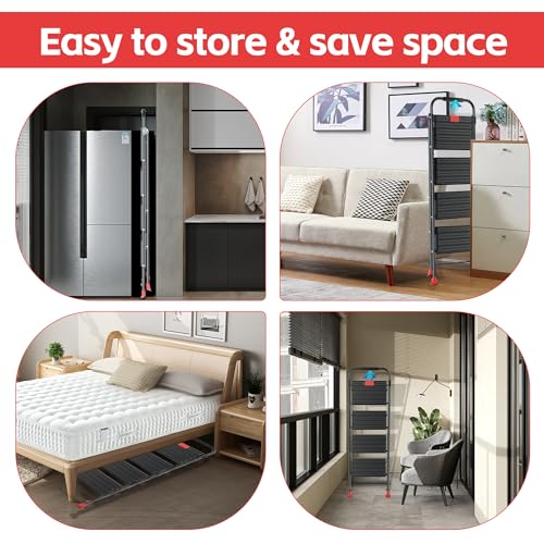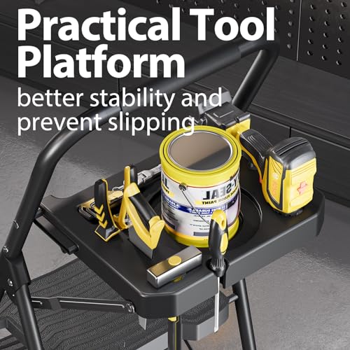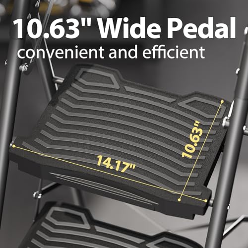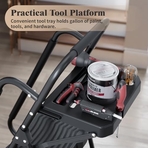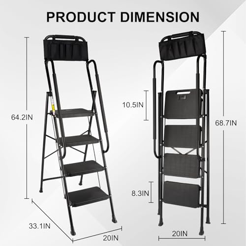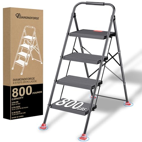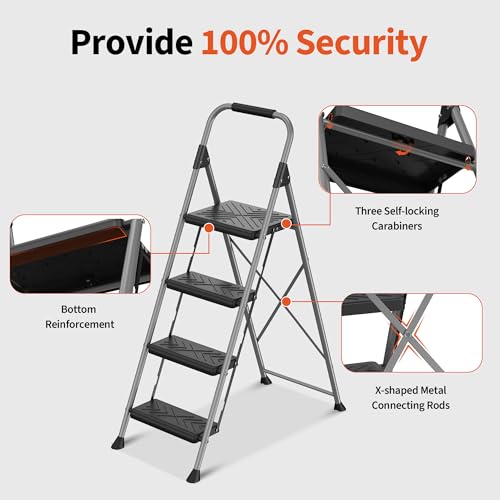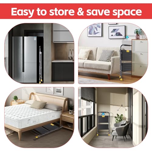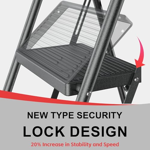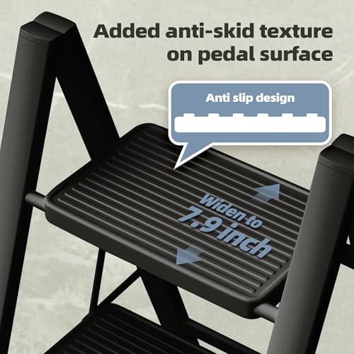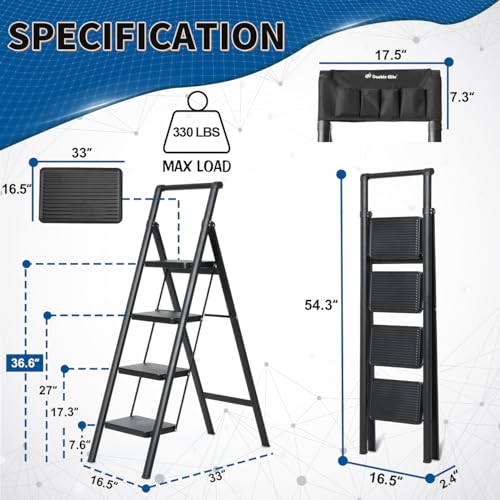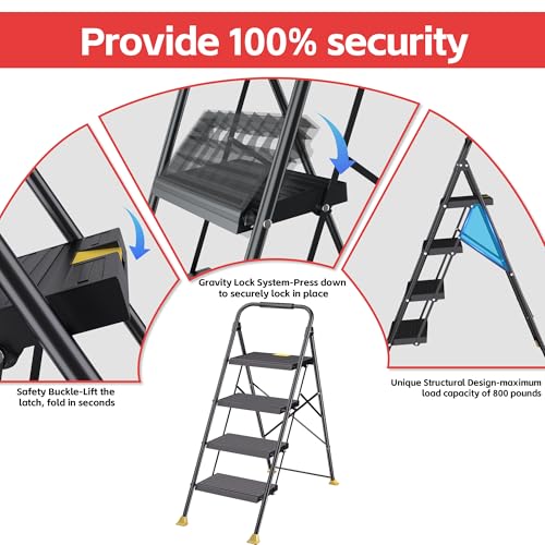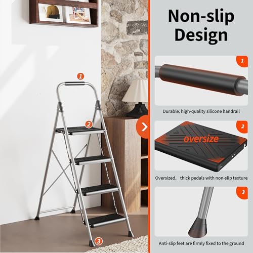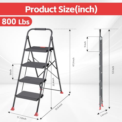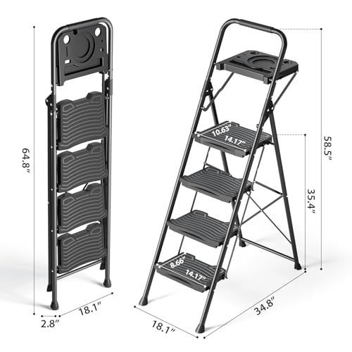 4 Step Ladder, Lightweight Folding Ladder with Anti-Slip Wide Pedal, Portable Multi-use Steel Step Stool for Adults, 330lbs Capacity Stepladder for Home, Office, Kitchen, Library (Black)