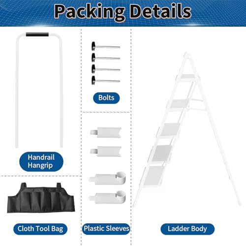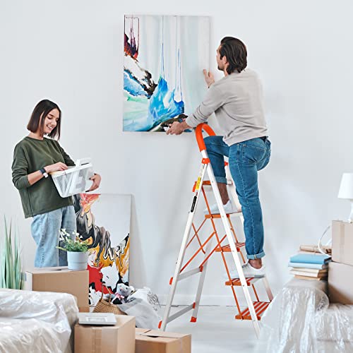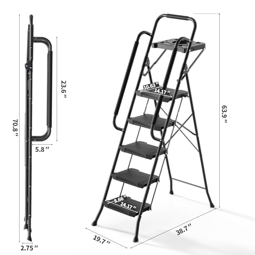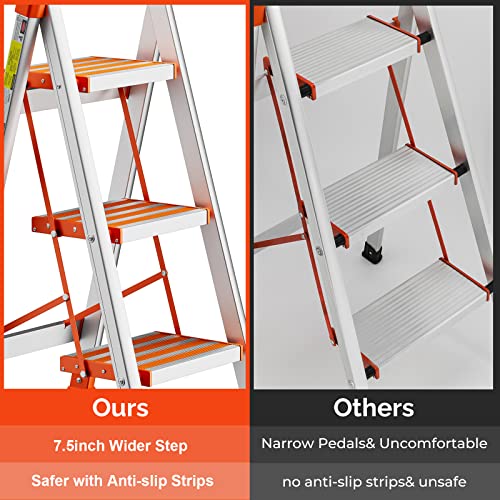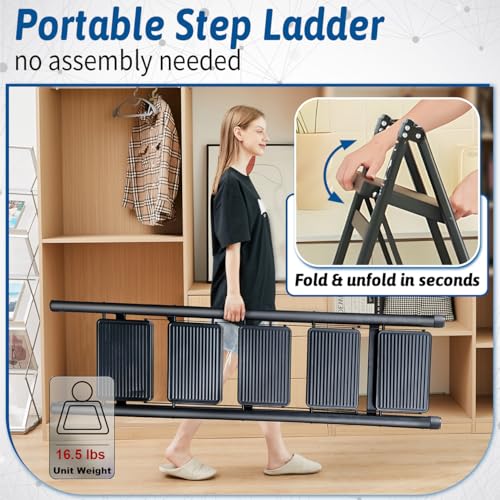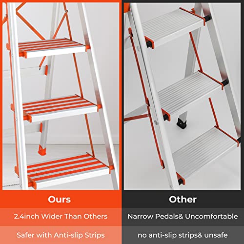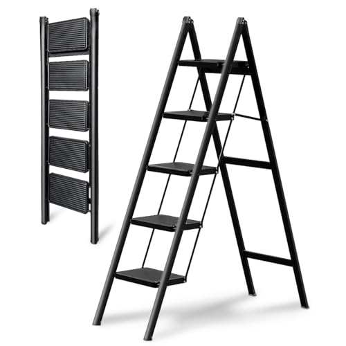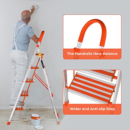 LUISLADDERS Step Ladder 5 Step Lightweight Folding Step Ladder Aluminum Step Stool with Widened Anti-Slip Strip Pedal Convenient Handgrip 350lbs EN131, Multi-use for Household and Office