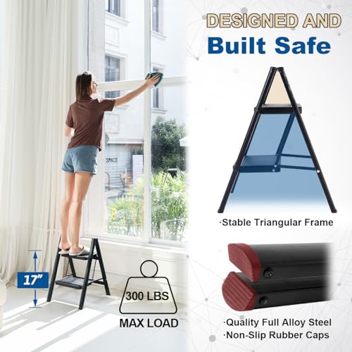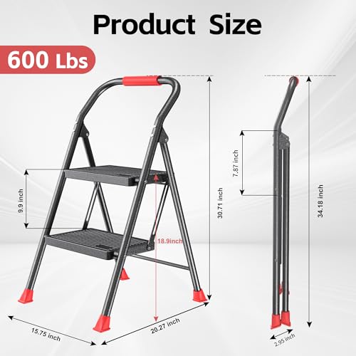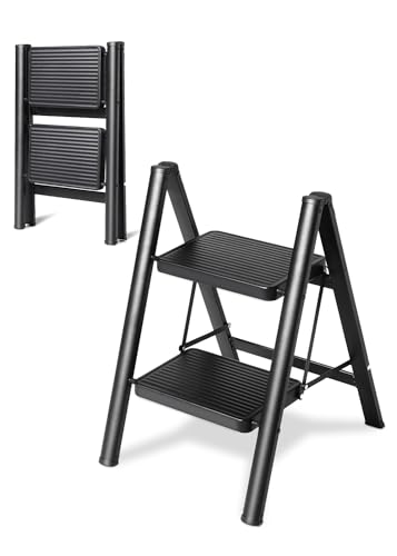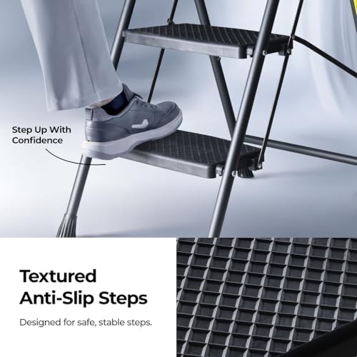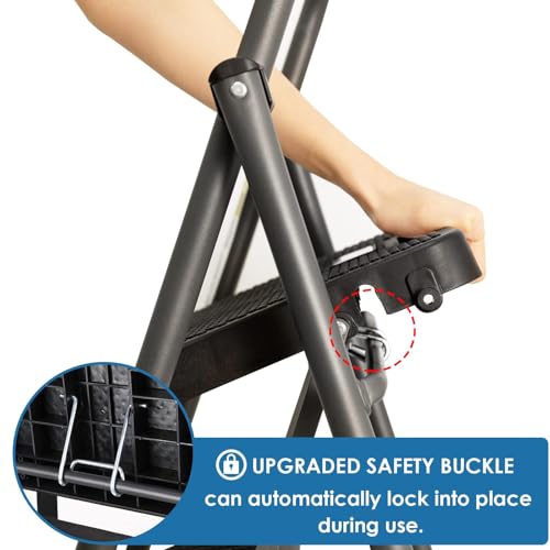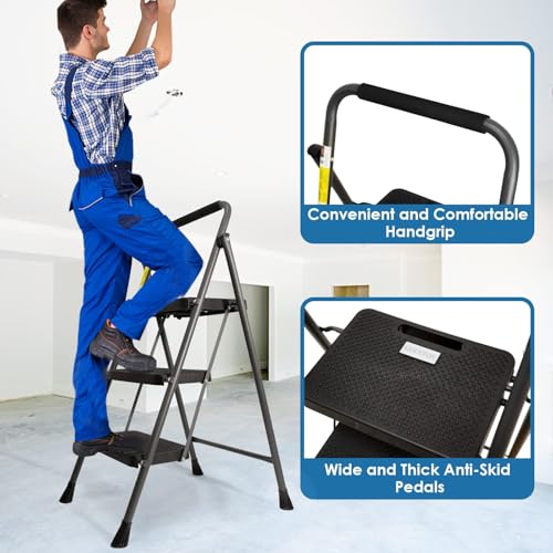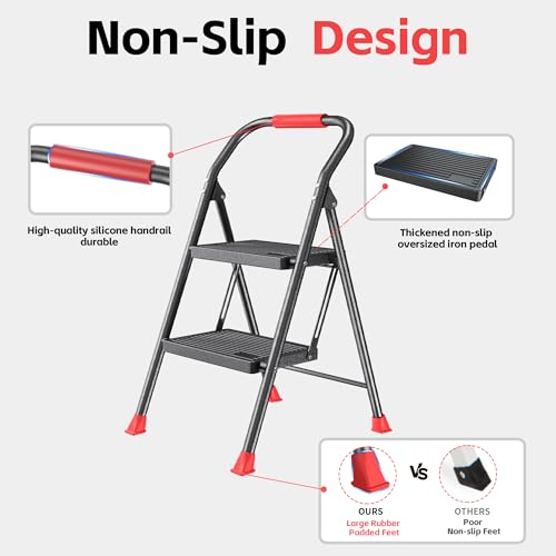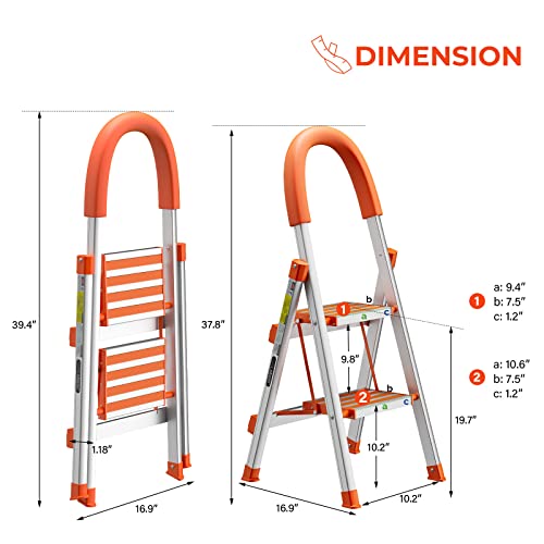 HBTower 2 Step Ladder,2 Step Stool for Adults Folding Step Stool with Cushioned Handle with Wide Anti-Slip Pedal Ergonomic Design