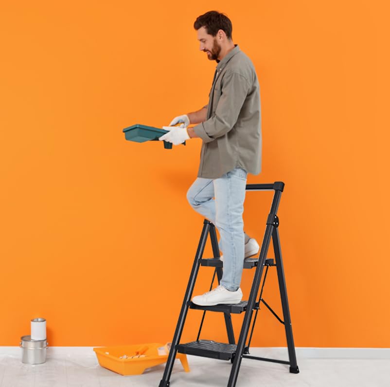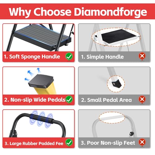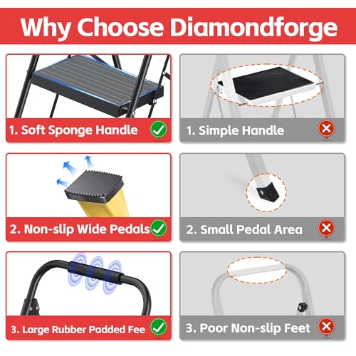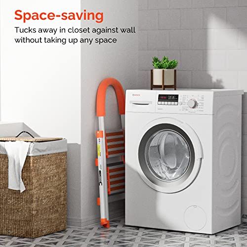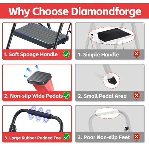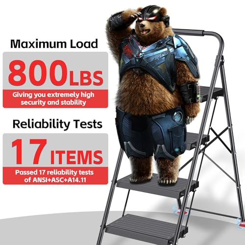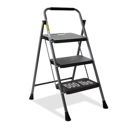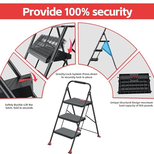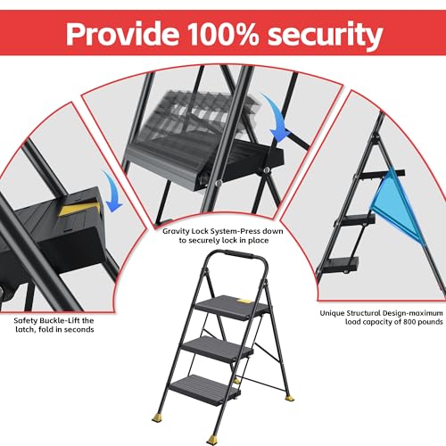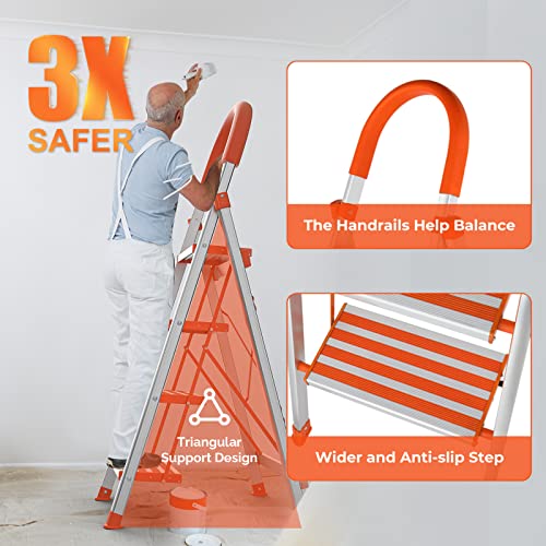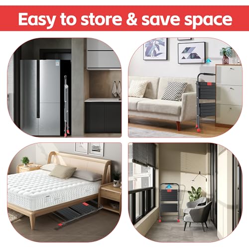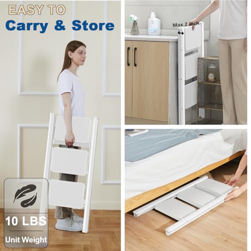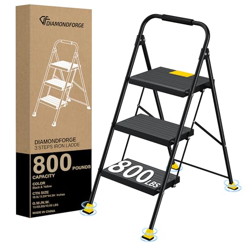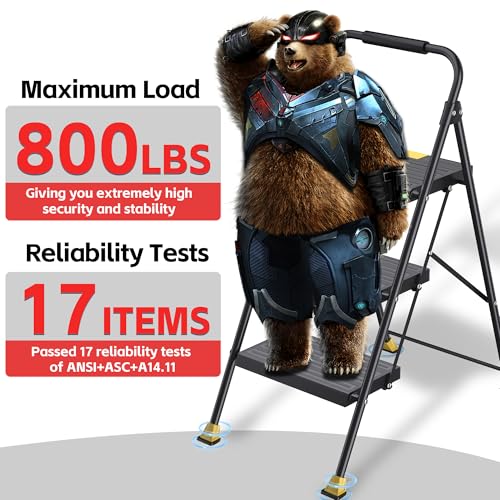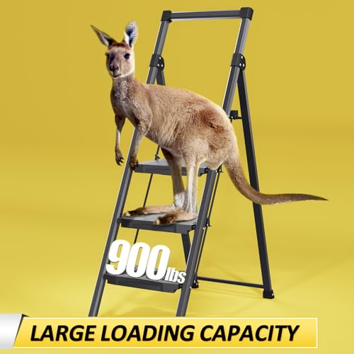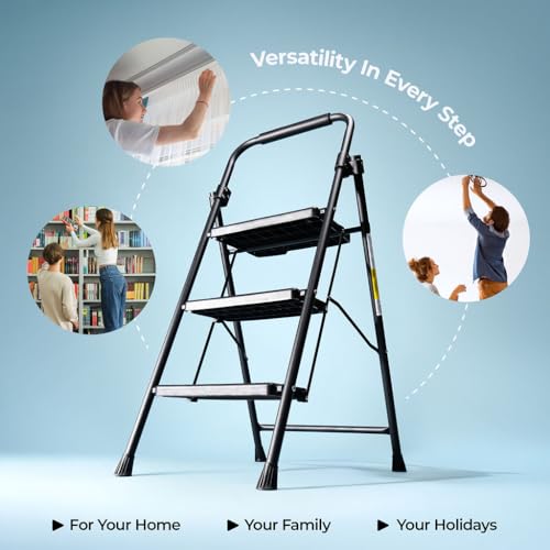 Step Ladder Foldable Folding Stool - for Home Adults Kitchen 3 Stepping Extension Tall Heavy Duty with Handrails - Closet Stepstool Stair Ladders Extendable Stepladder for Indoor House 800Lbs