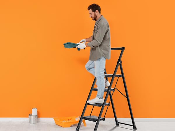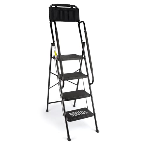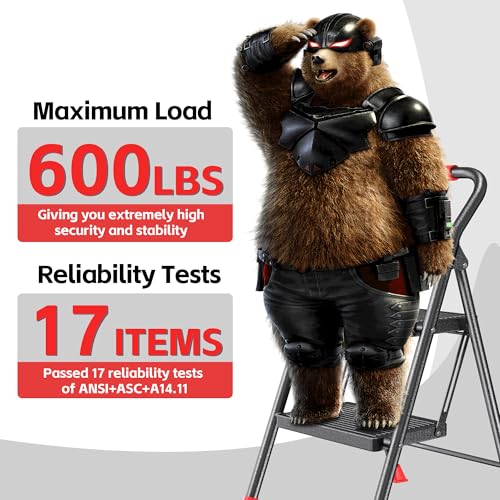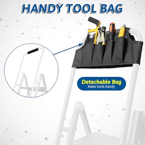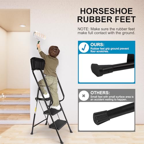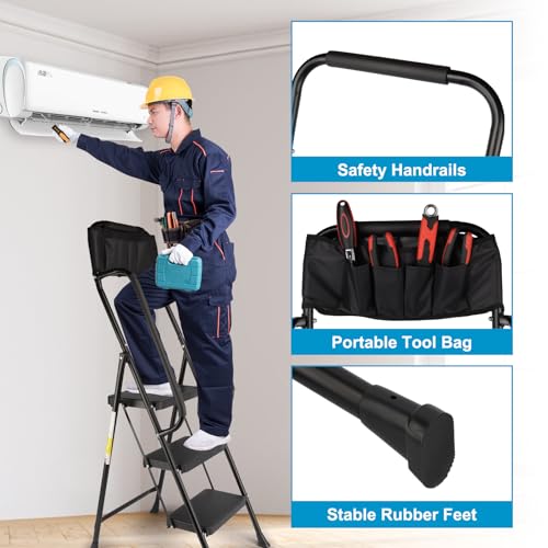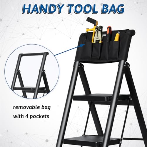 Valeo 3 Step Ladder with Handrails,500 Lbs Capacity,Folding Step Stool Ladder with Attachable Tool Bag,Lightweight & Storage Step Ladder 3 Step Folding,Multi-use for Home,Kitchen,Office,Black