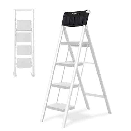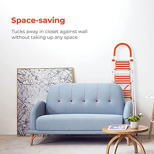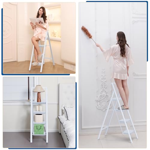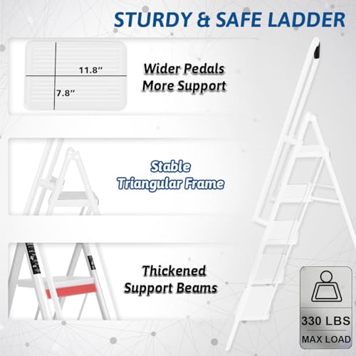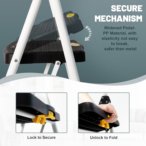 SocTone 3 Step Ladder, Folding Step Stool for Adults with Handle, Lightweight, Perfect for Kitchen& Household, 500lbs Capacity Sturdy Steel Ladder White