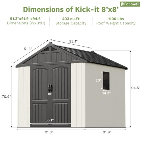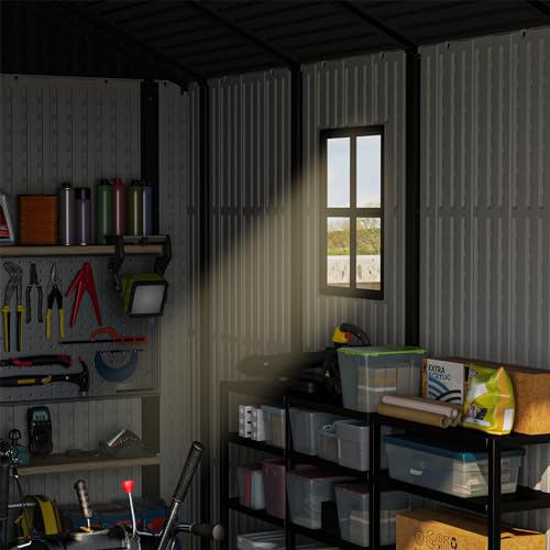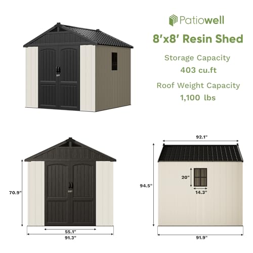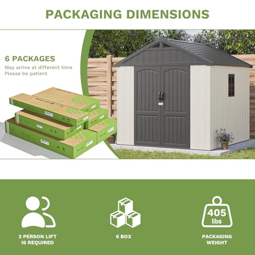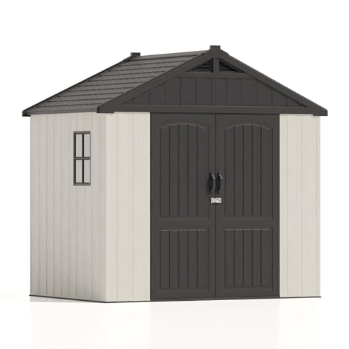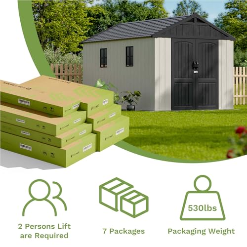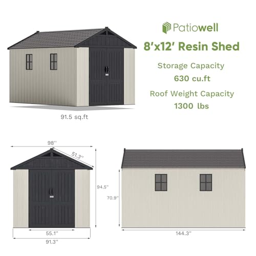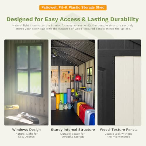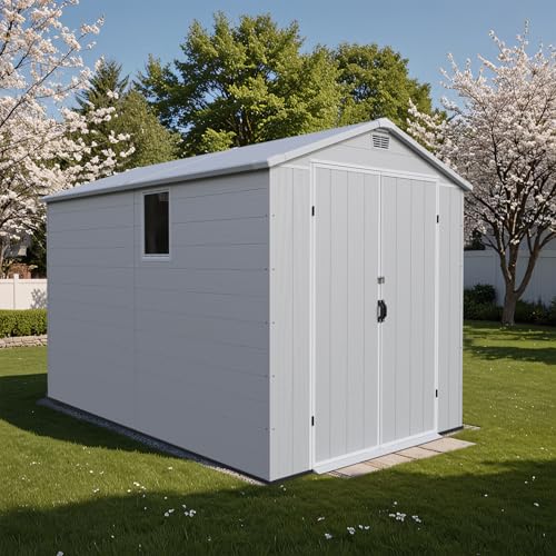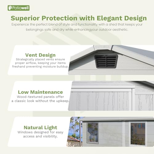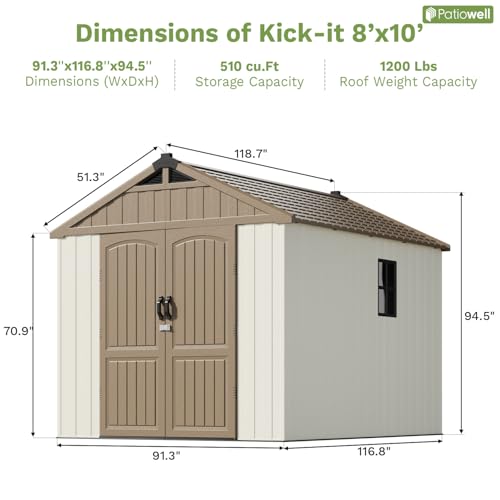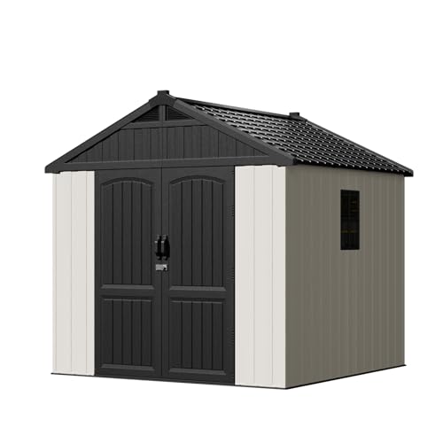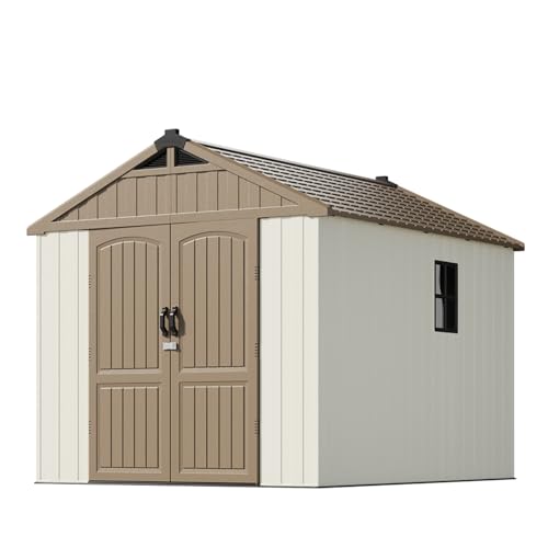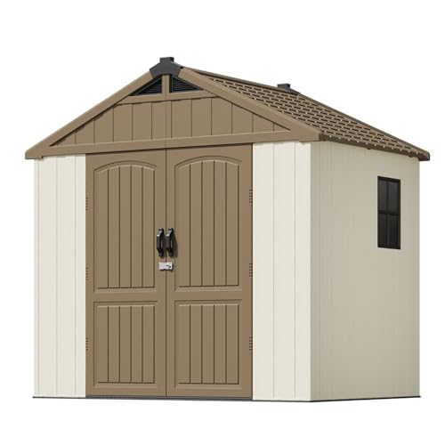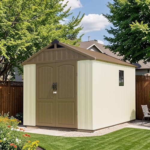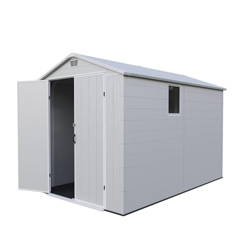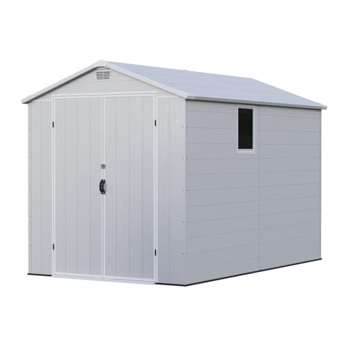 Patiowell 8 x 12 FT Plastic Outdoor Storage Shed with Floor, Resin Shed with Window and Lockable Door for Garden, Backyard, Tool Storage Use, Easy to Install in Beige (Kick-it Shed)
