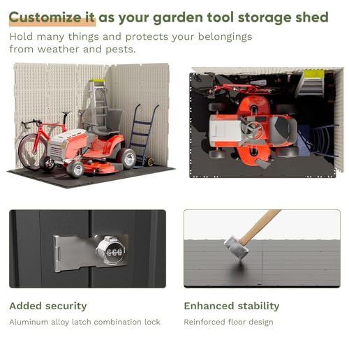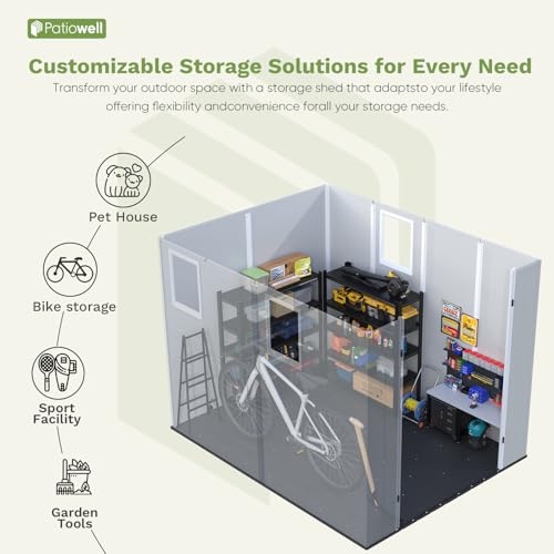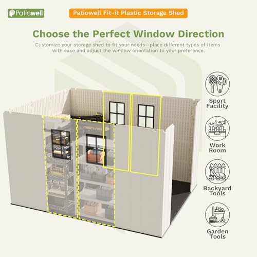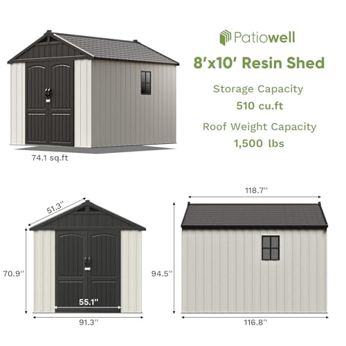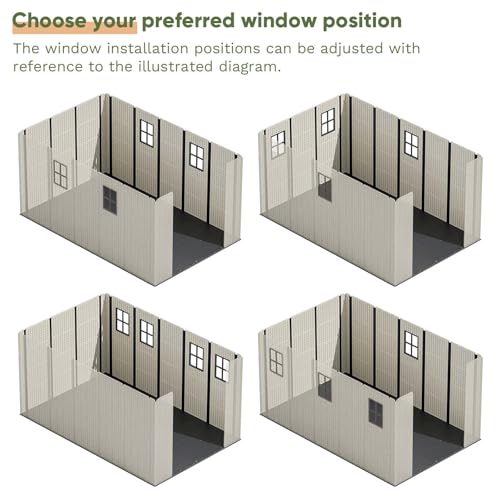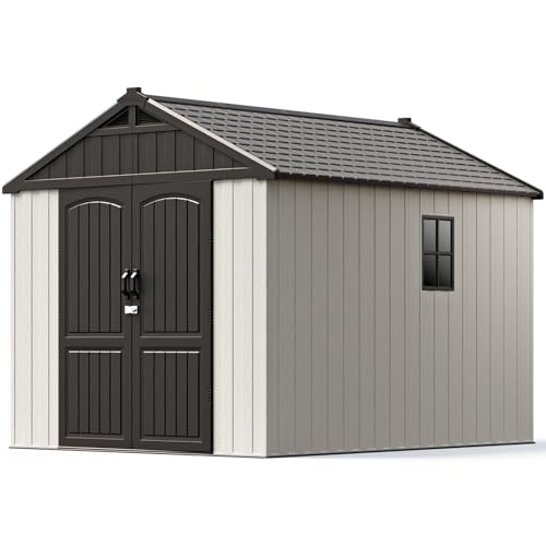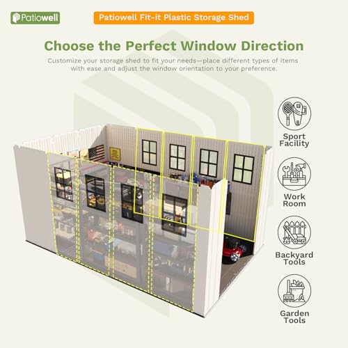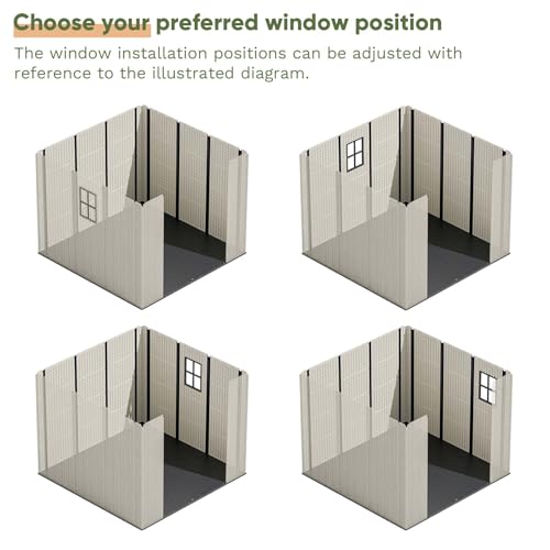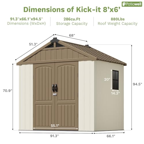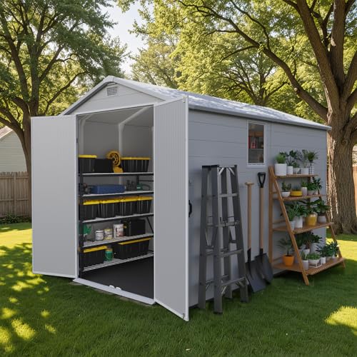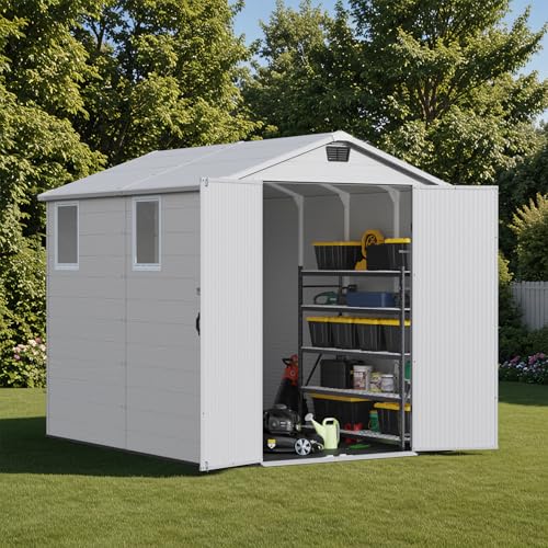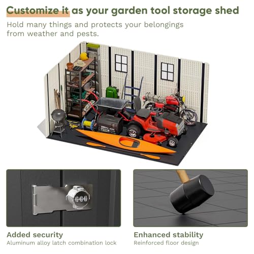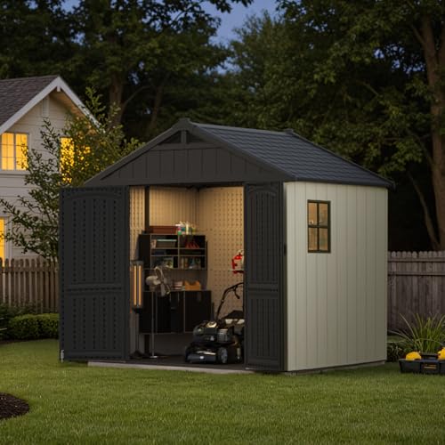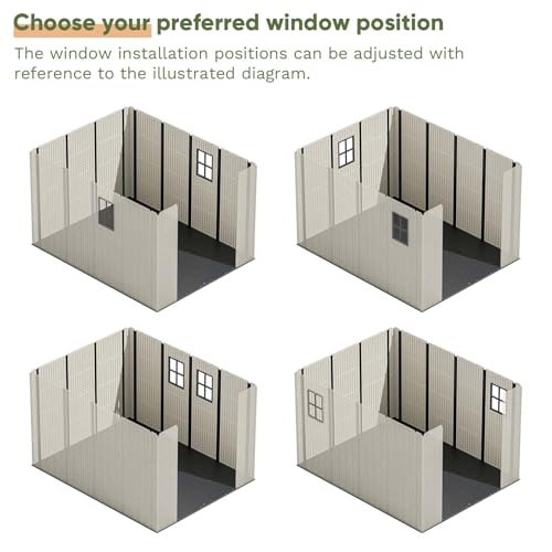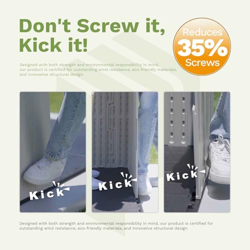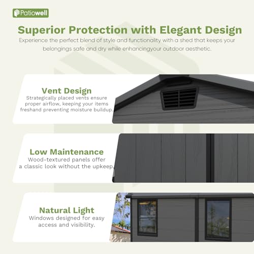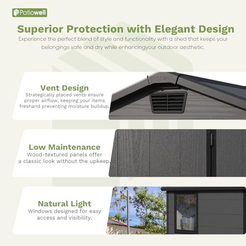 Patiowell 8 x 12 FT Plastic Outdoor Storage Shed with Floor, Resin Shed with Window and Lockable Door for Garden, Backyard, Tool Storage Use, Easy to Install in Beige (Kick-it Shed)