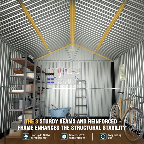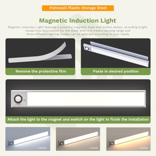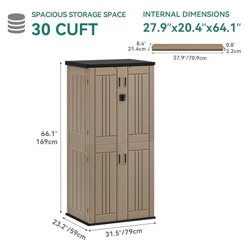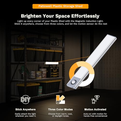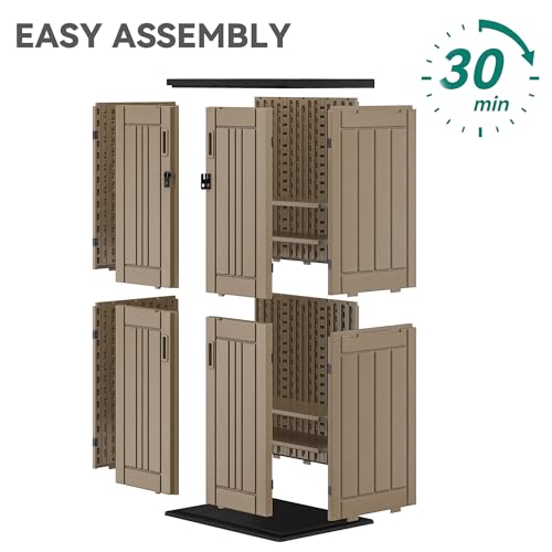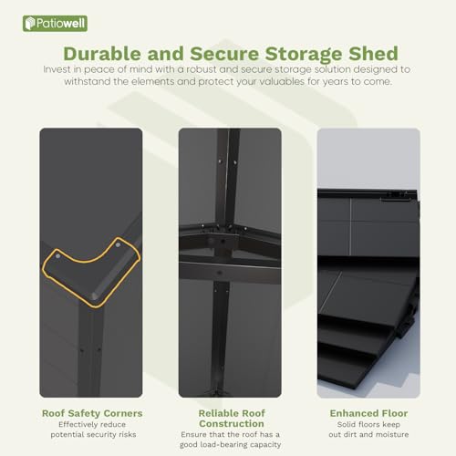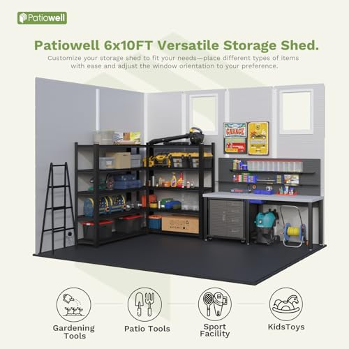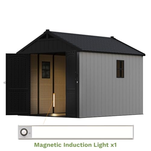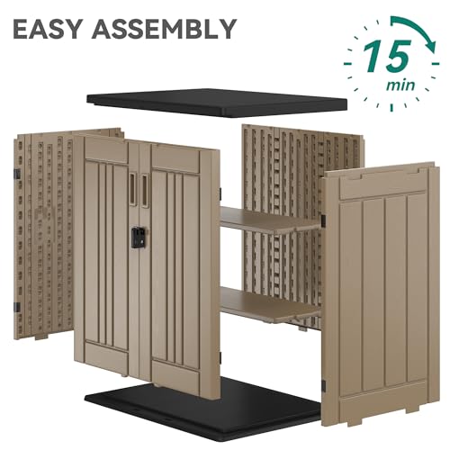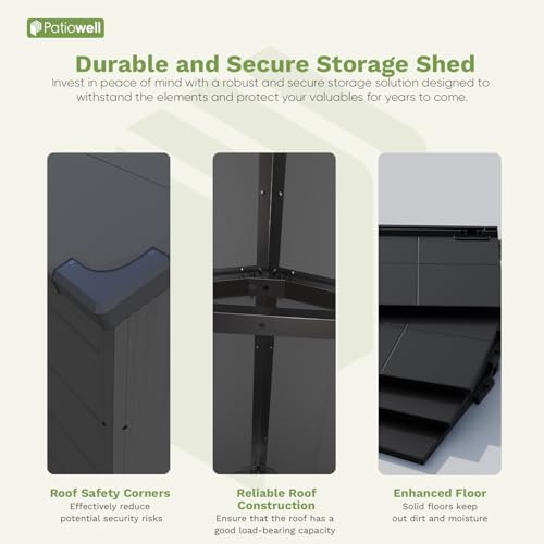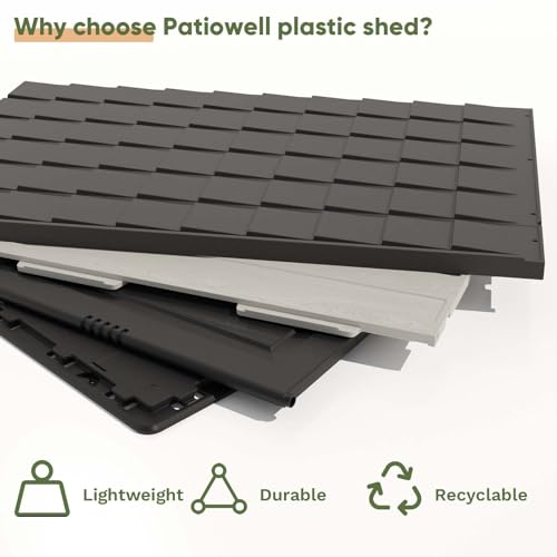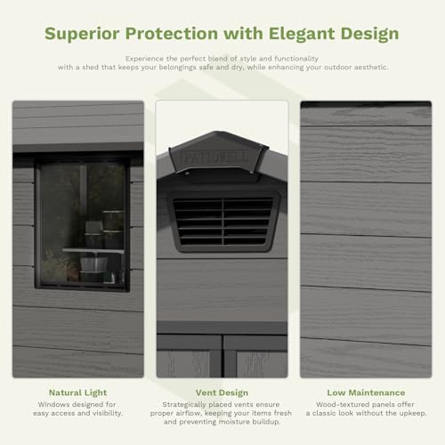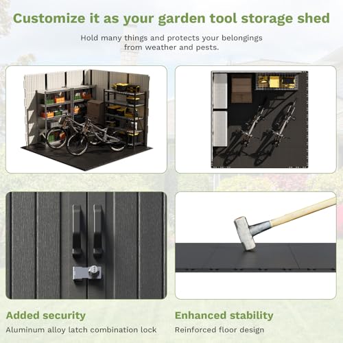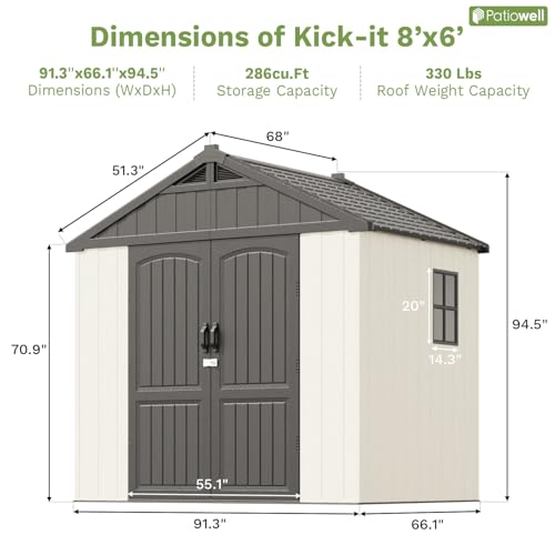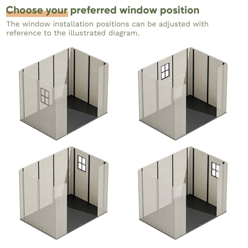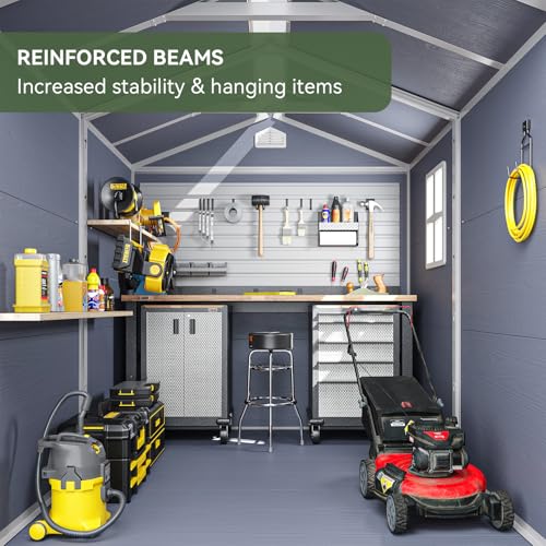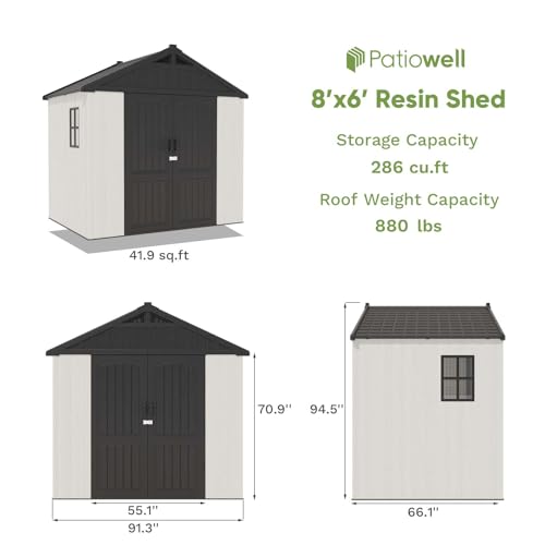 Patiowell 8 x 12 FT Plastic Outdoor Storage Shed with Floor, Resin Shed with Window and Lockable Door for Garden, Backyard, Tool Storage Use, Easy to Install in Beige (Kick-it Shed)