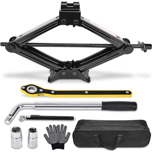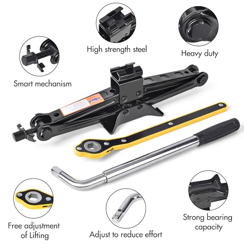 Car Jack Kit Scissor Jack for Car 2 Ton (4409 lbs) Tire Jack Tool Kit Universal Car Emergency Kit with Lug Wrench Tire Changing Kit for Car SUV (2T)