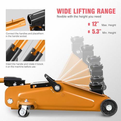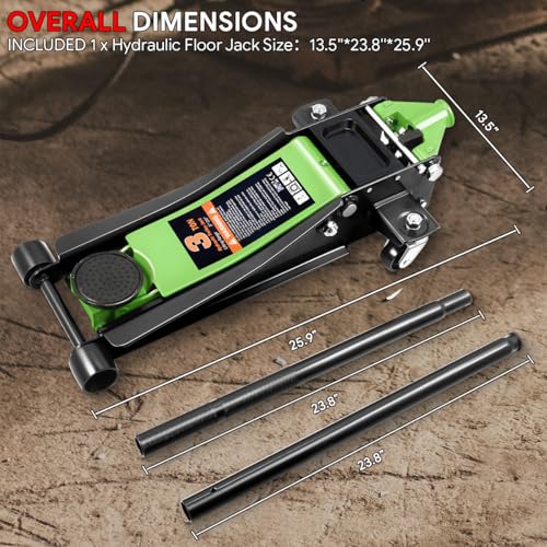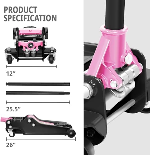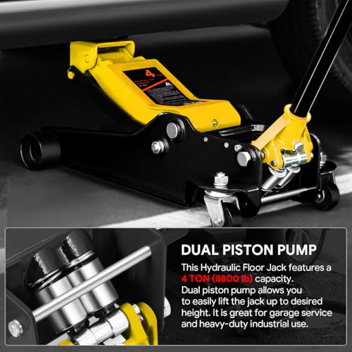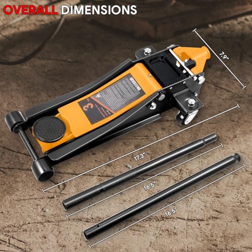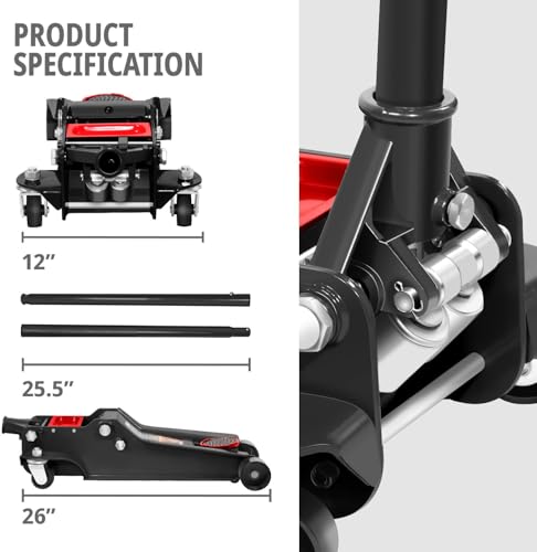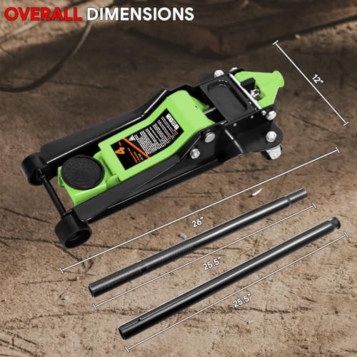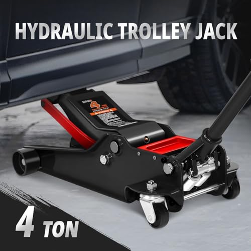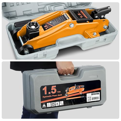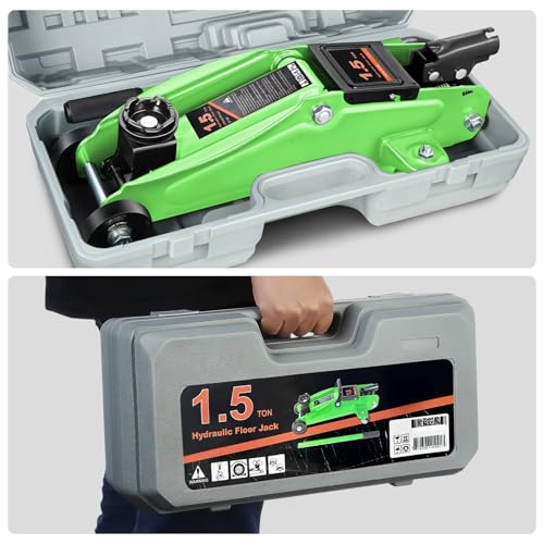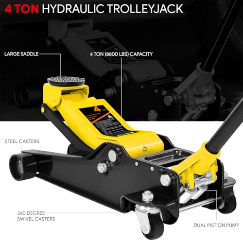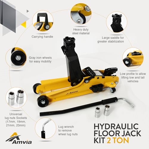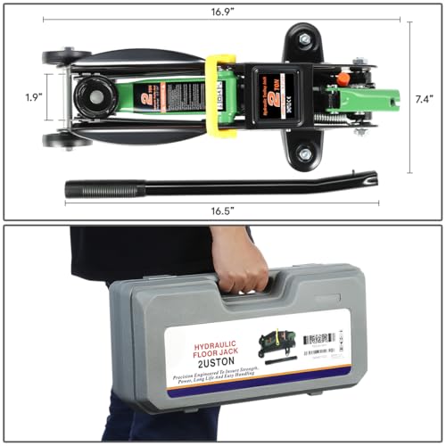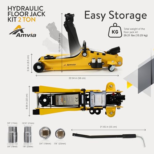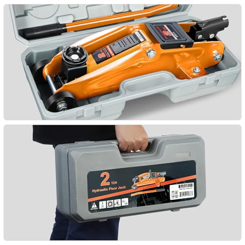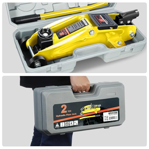 Floor Jack Kit 2 Ton with Case (4,400 lbs) | Car Jack Kit - Hydraulic Low Profile Jack | Trolley Jack - Tire Jack Tool Kit | Portable, Ideal for SUV and Auto - Universal Kit with Lug Wrench