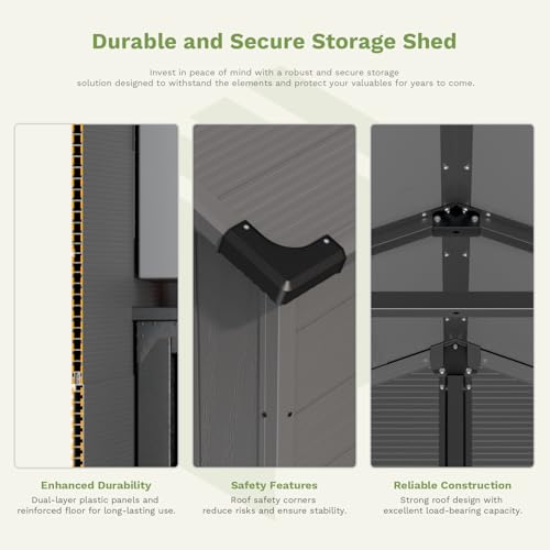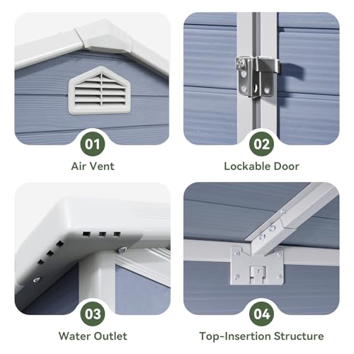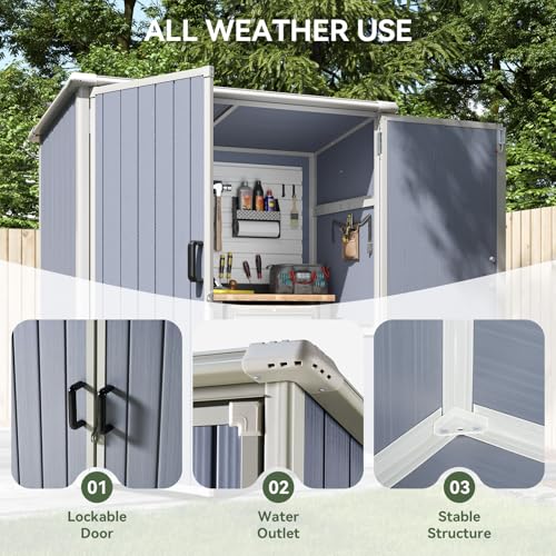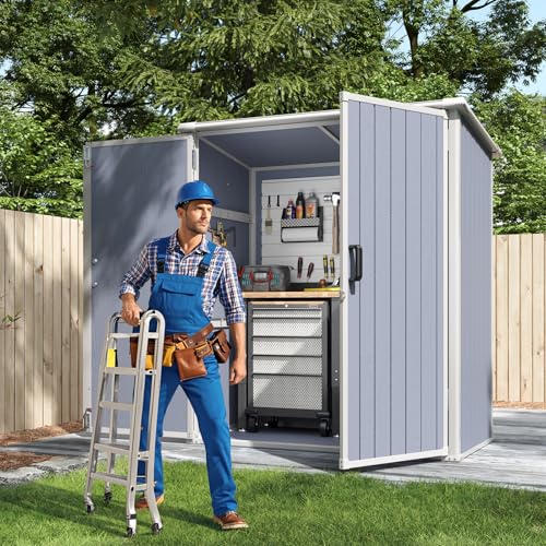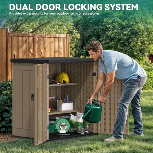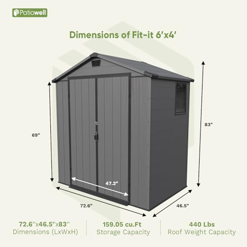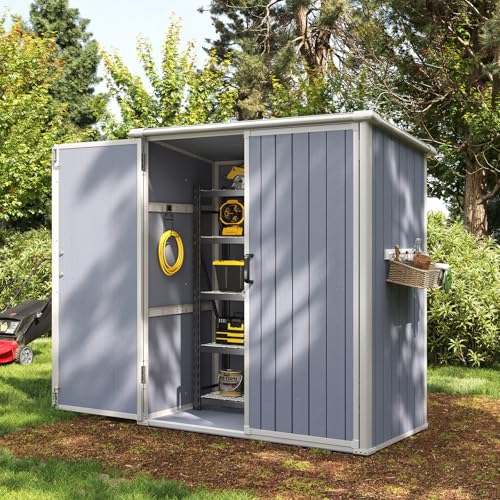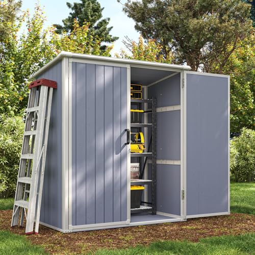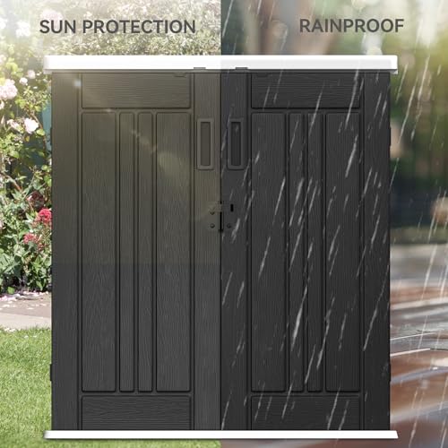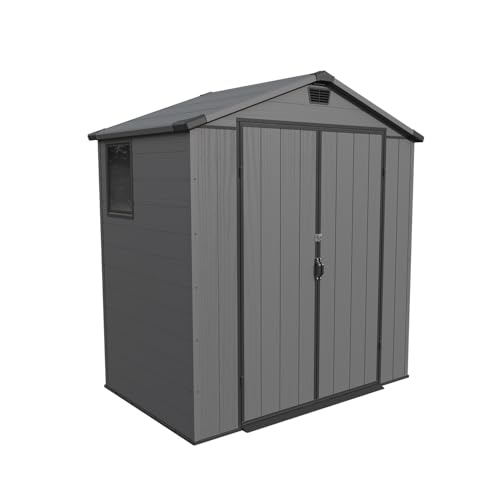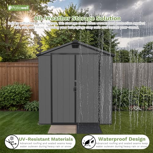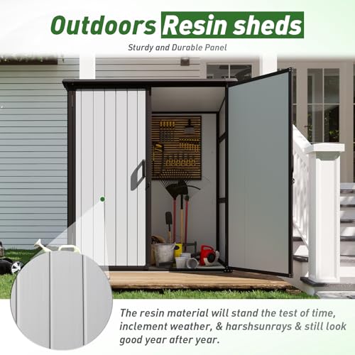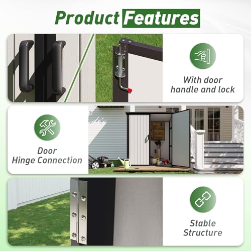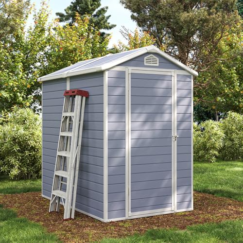 Devoko 6x4 FT Outdoor Storage Shed - Waterproof Plastic Resin Garden Shed with Lockable Door & Floor, for Backyard, Patio, Lawn & Pool Tools