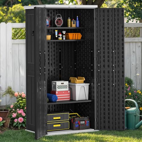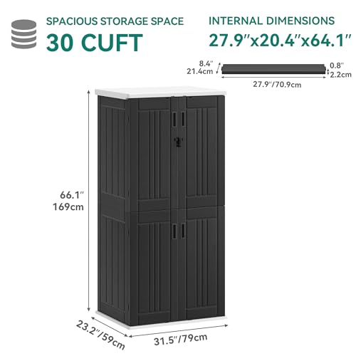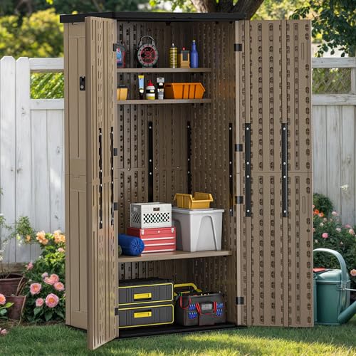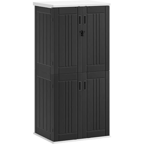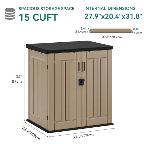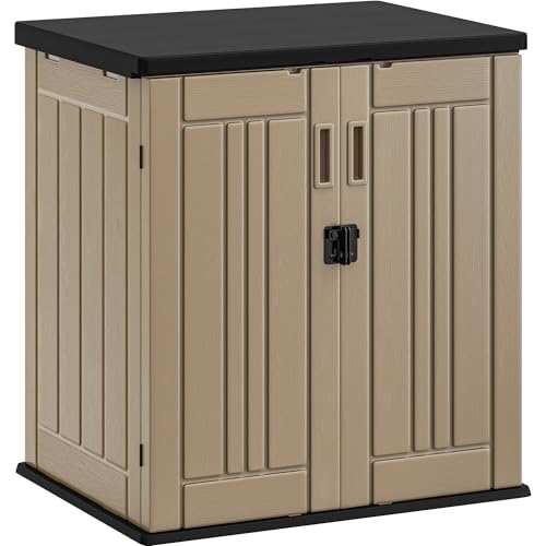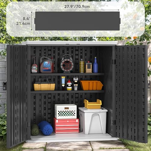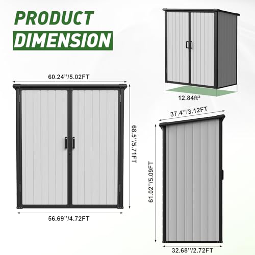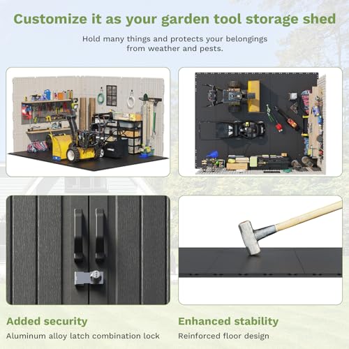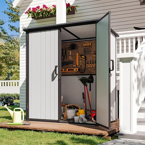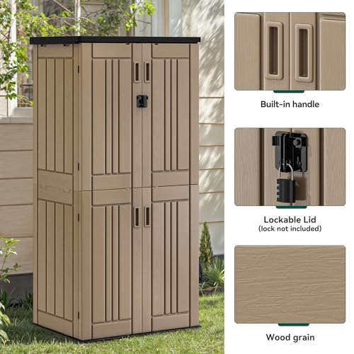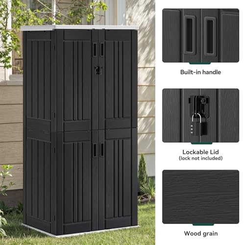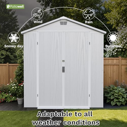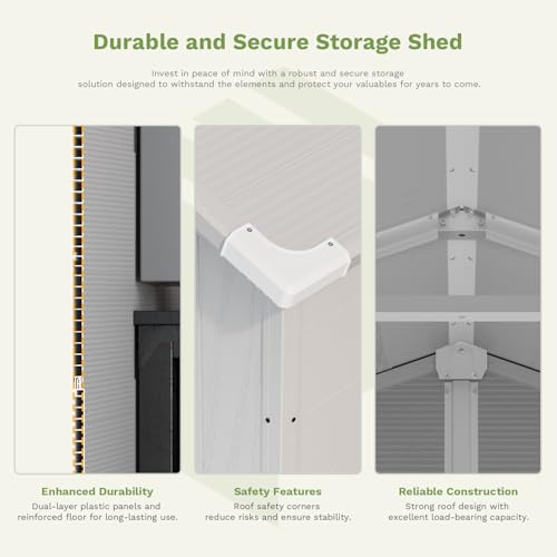 Devoko 6x4 FT Outdoor Storage Shed - Waterproof Plastic Resin Garden Shed with Lockable Door & Floor, for Backyard, Patio, Lawn & Pool Tools
