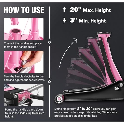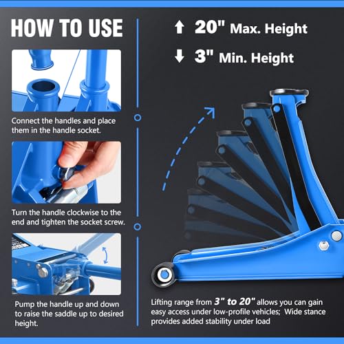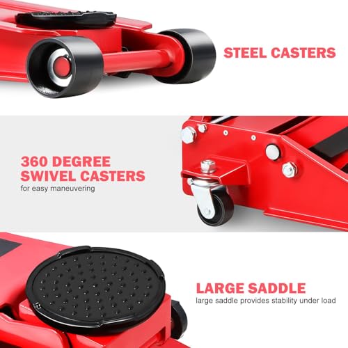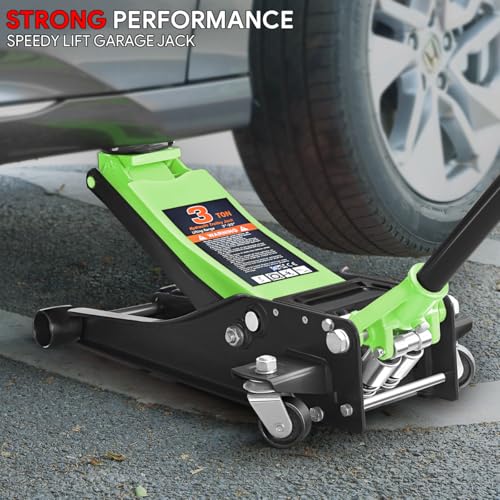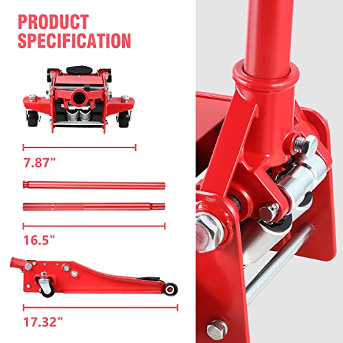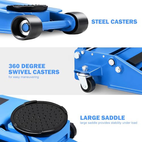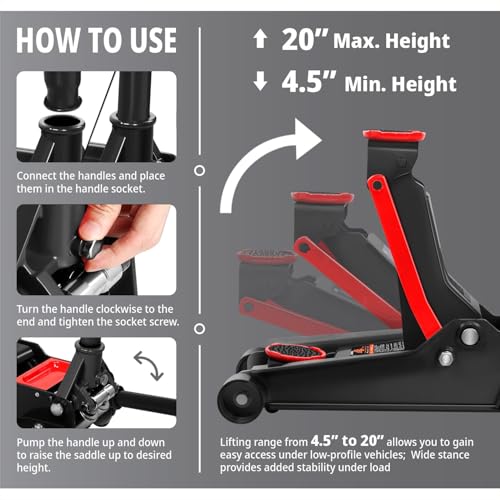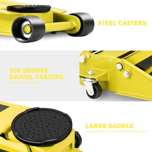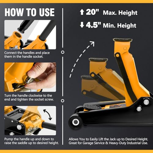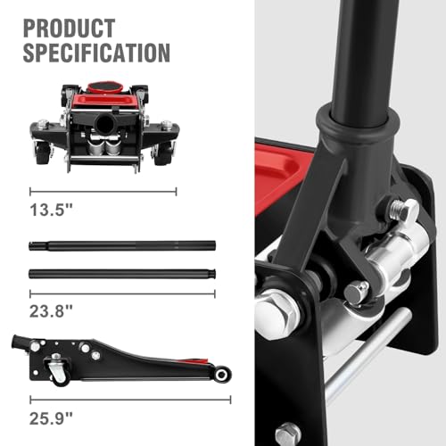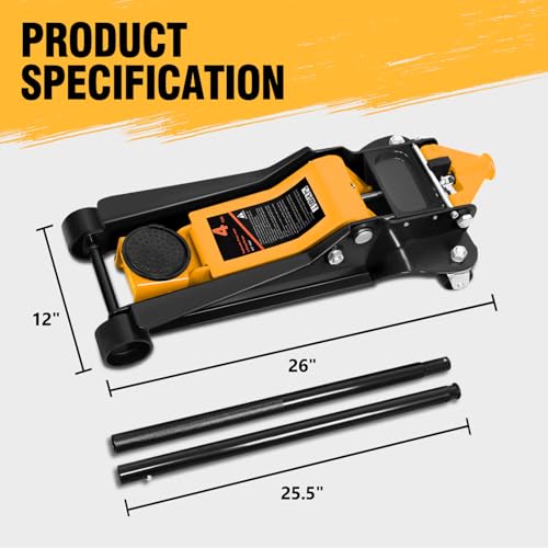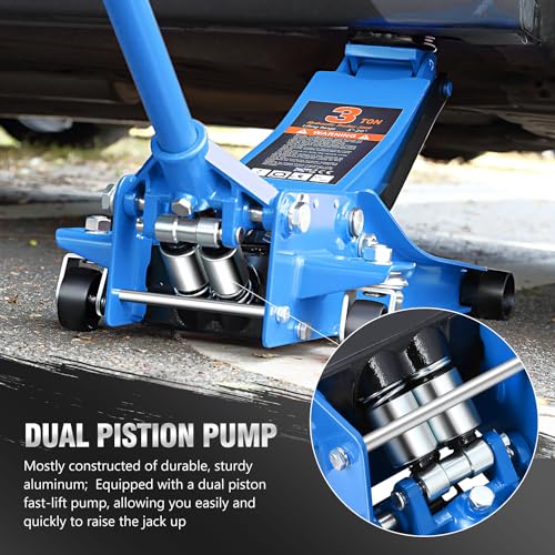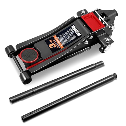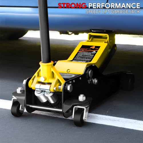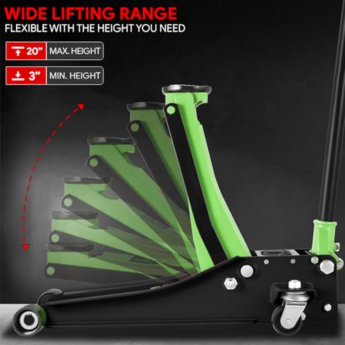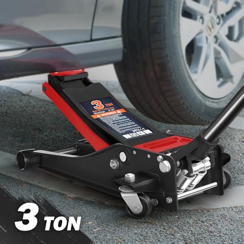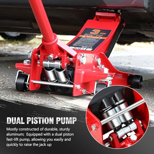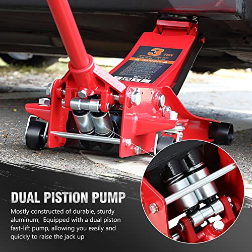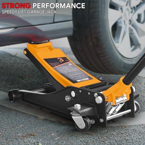 DNA MOTORING Floor Jack 3 Ton (6000 lbs) Capacity, Fast Lift Service Jack Low Profile Steel Heavy Duty Hydraulic Car Jack, Lifting Range 3"-20", Black, TOOLS-00475-BK