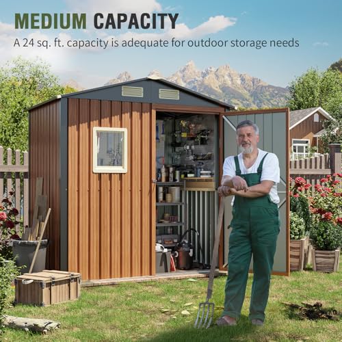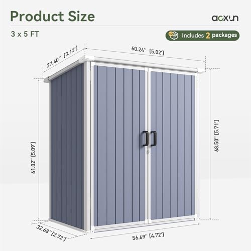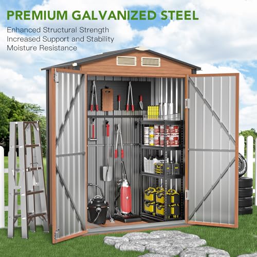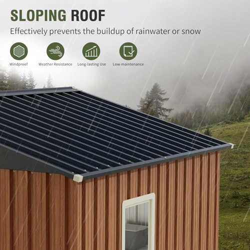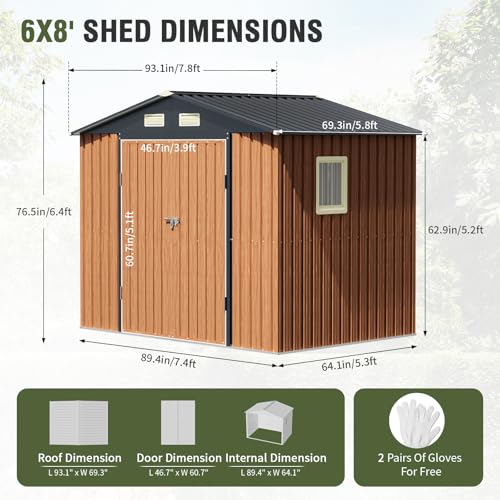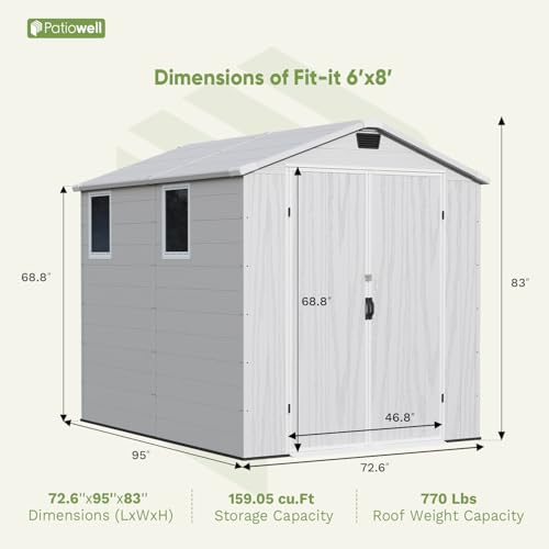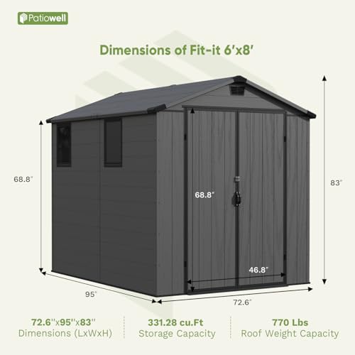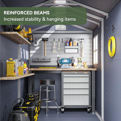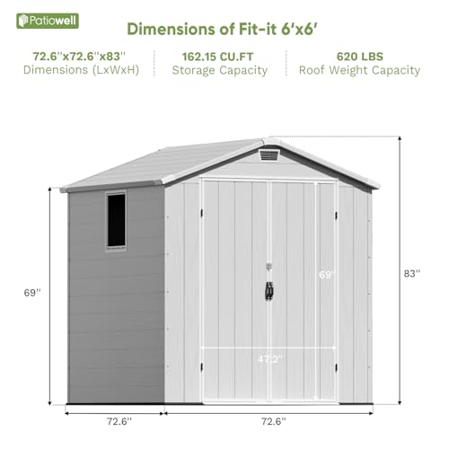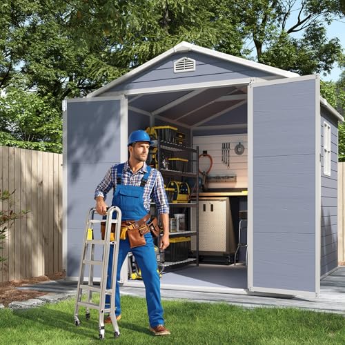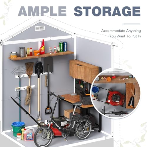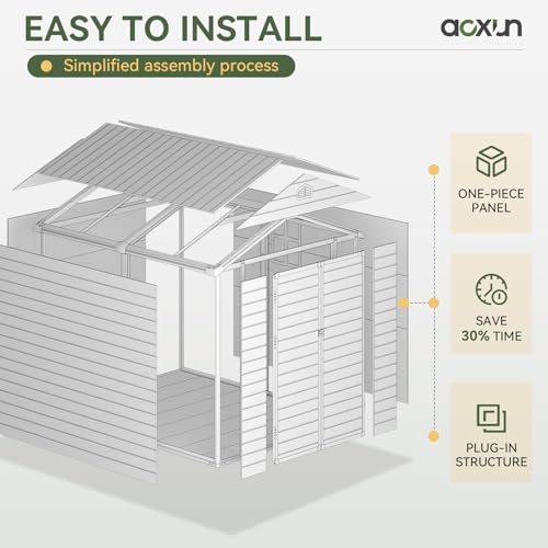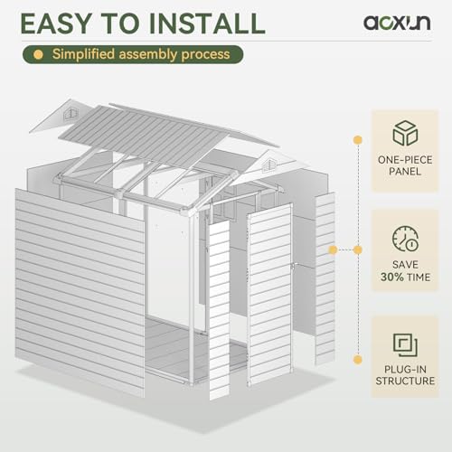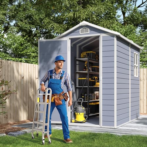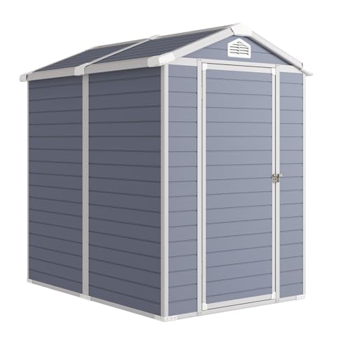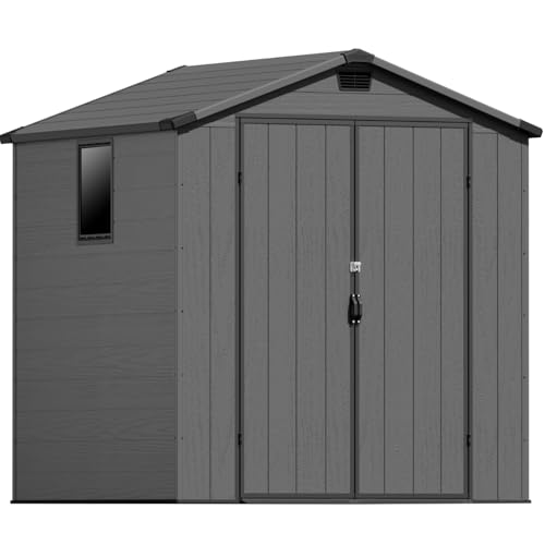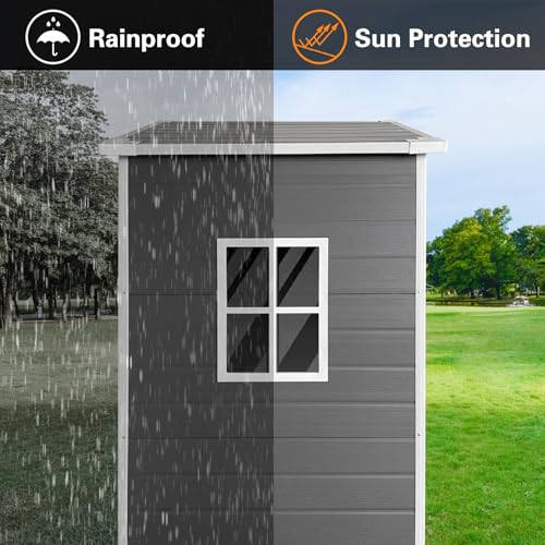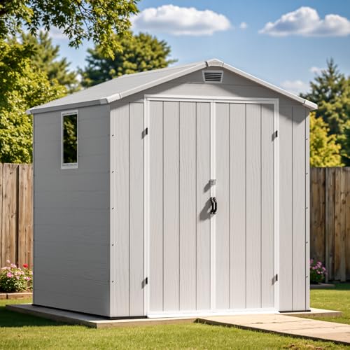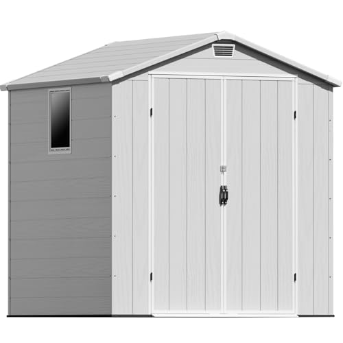 Aoxun 6 x 8 FT Outdoor Storage Shed with Window, Resin Shed with Floor & Lockable Doors, Garden Shed Waterproof Plastic Tool Shed with Sloped Roof for Backyard, Garden, Patio, Lawn, Grey