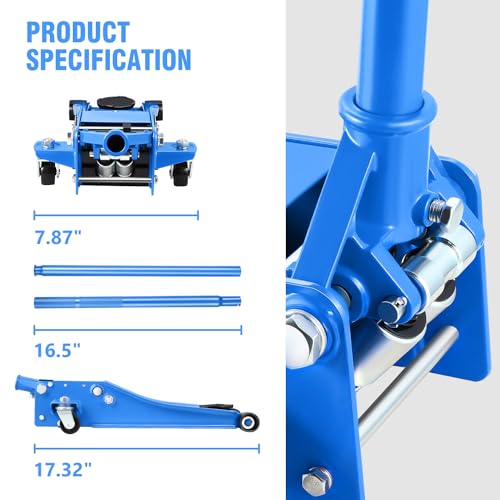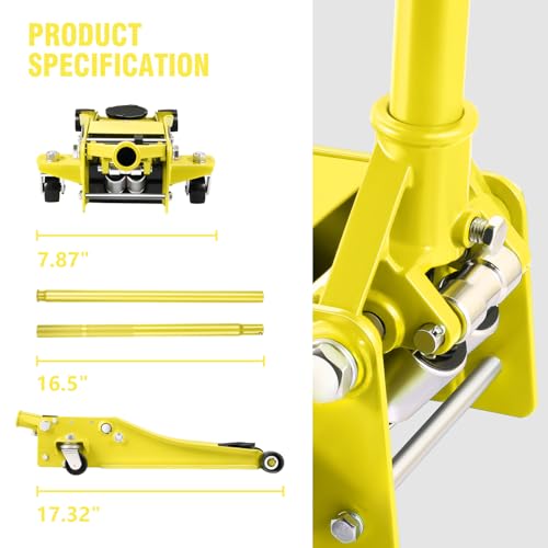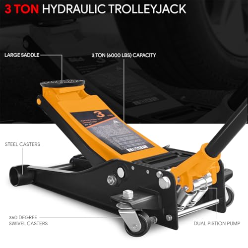 DNA MOTORING TOOLS-00235 Low Profile Hydraulic Trolley Service/Floor Jack, 3 Ton (6000 lbs) Capacity, Lifting Range 3"-20"