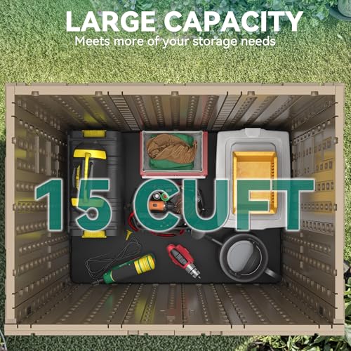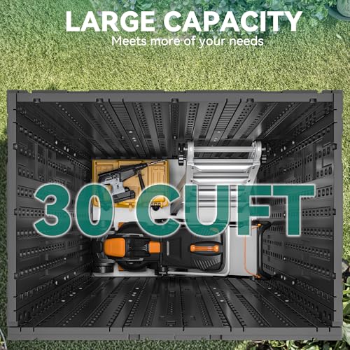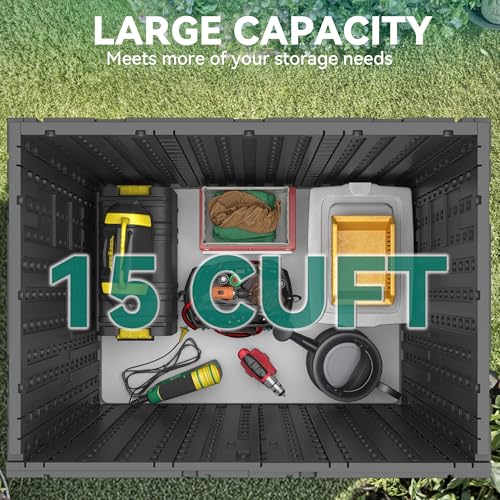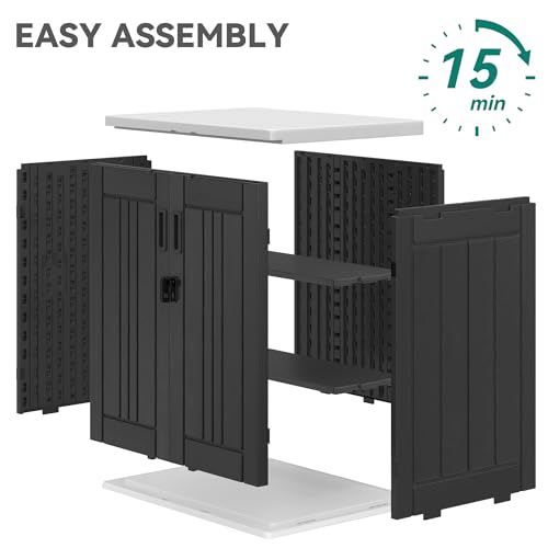 YITAHOME Outdoor Storage Cabinet with 2 Shelves, Waterproof Resin Horizontal Tool Shed, Lockable 15 cu. ft. Storage Shed for Patio, Garden, Yard, Dark Gray