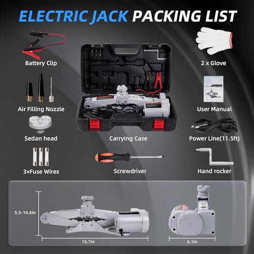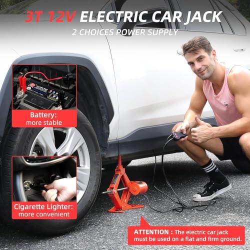 STANDTALL Electric Car Jack 3T Scissor Floor Jack Set 12V Automatic Vehicle Lift Kit for Road Emergency Tire Change Car Repair Tool for Sedans and SUV