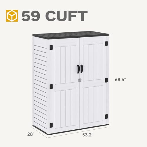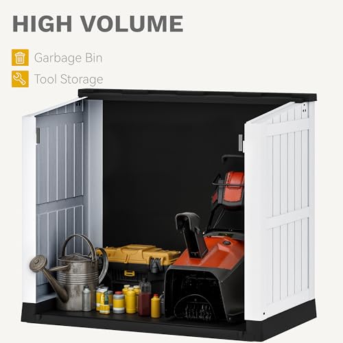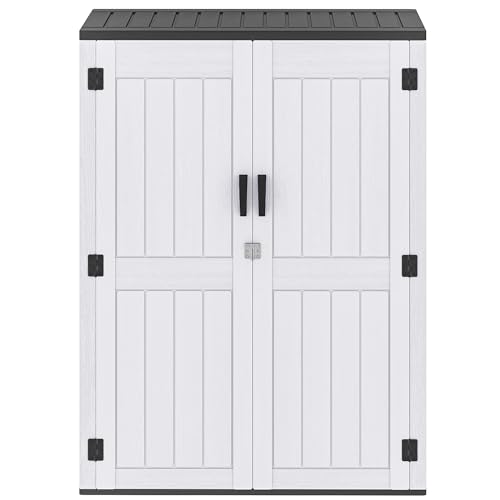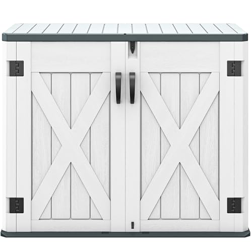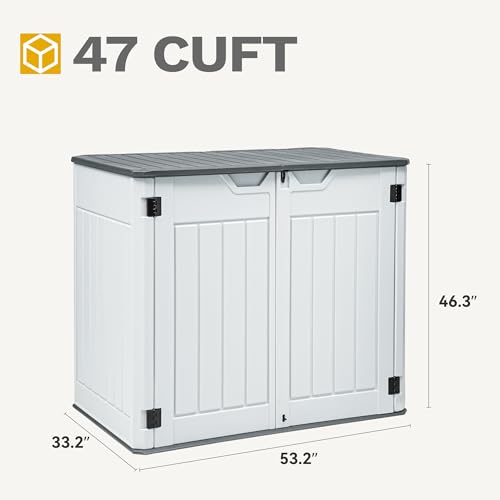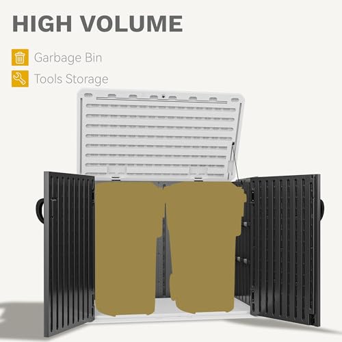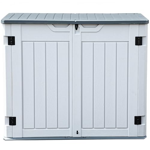 Devoko Outdoor Storage Cabinet 26 Cu Ft with Lockable Doors, Horizontal Storage Shed Waterproof Patio Tools Storage Box for Sofa Cushions, Gardening Tools and Accessories (White)