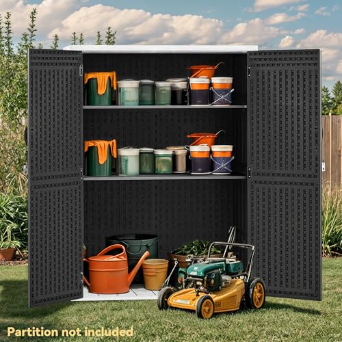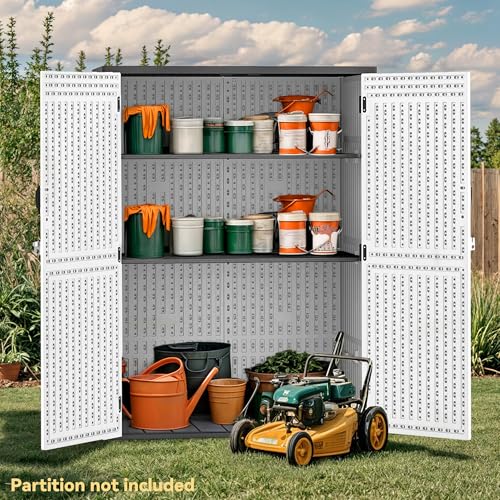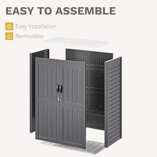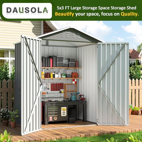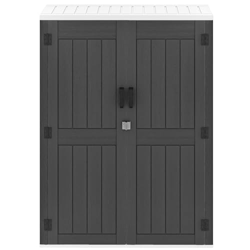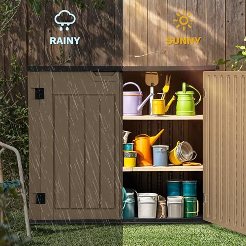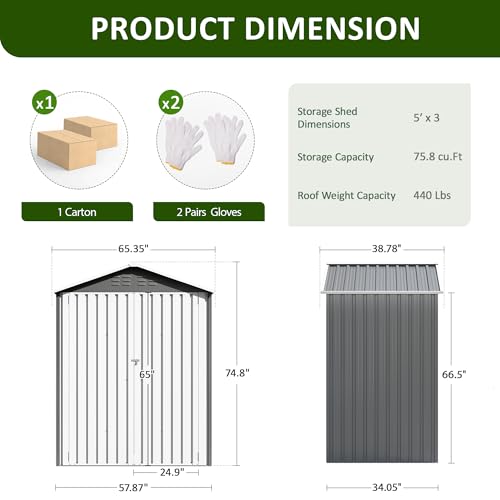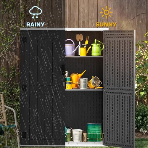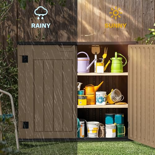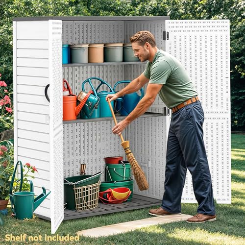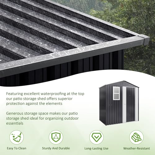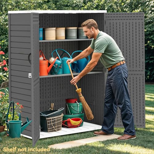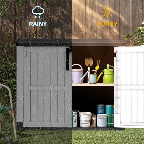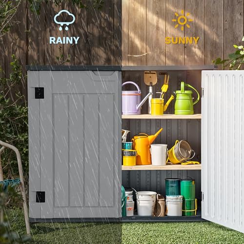 Shintenchi 5x3 FT Outdoor Storage Shed with Window, Lockable Outdoor Waterproof Tool Storage Sheds, Weather Resistant Tool Storage House Shed for Garden, Backyard, Patio Utility and Tool Storage, Gray